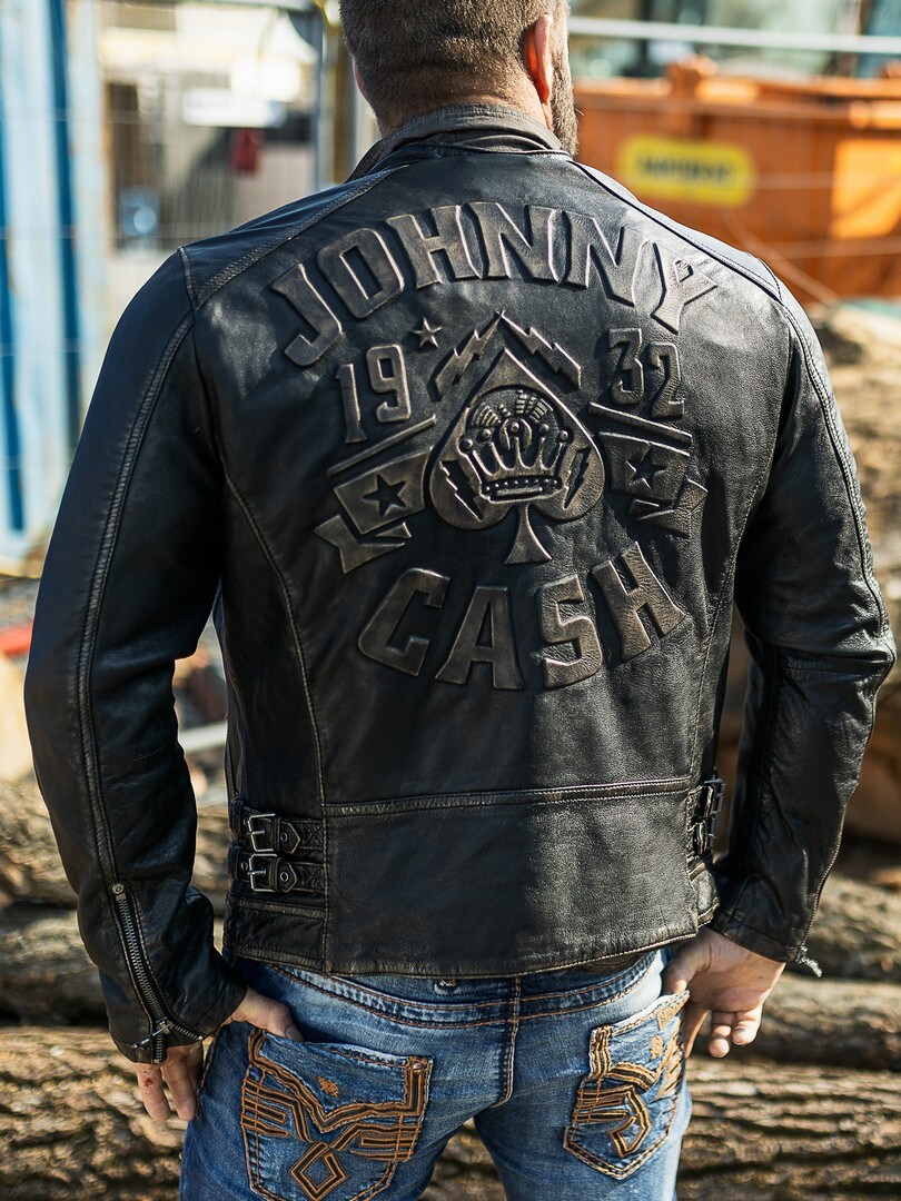 Unik skindjakke fra Gipsy med et motiv, der hylder den store legende, Johnny Cash!