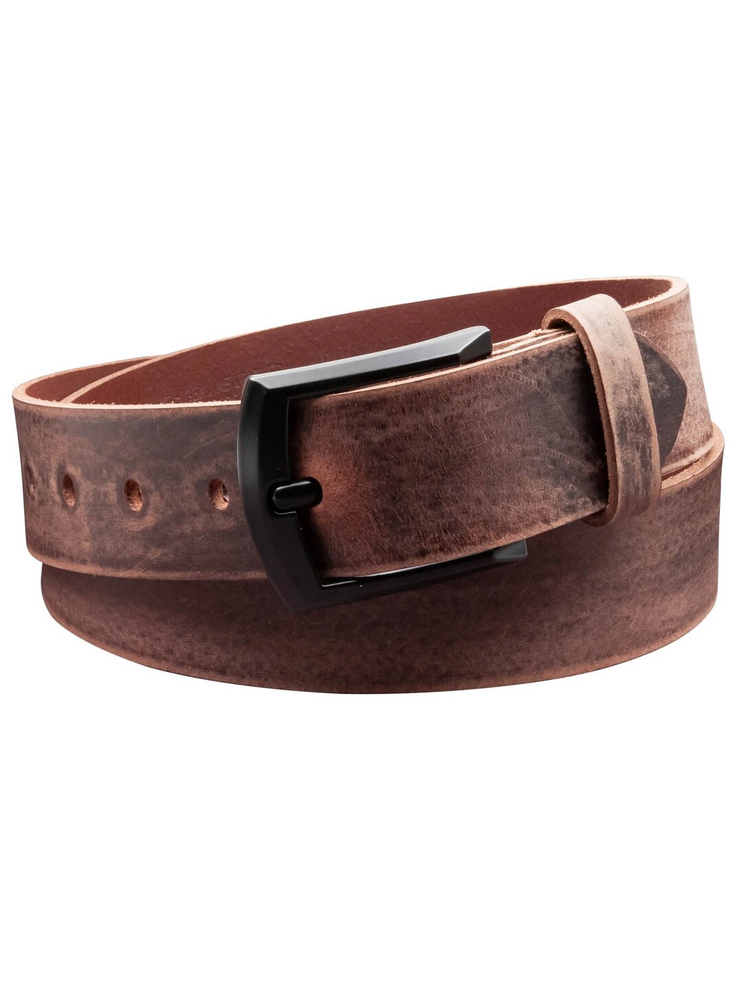 A belt made from sanded full grain leather with a rustic, natural surface that gives it an authentic look. The 4 cm width makes it easy to pair with both jeans and more dressed-up trousers, while the dark metal buckle adds a modern and robust touch. Made in Germany for high quality and long-lasting durability.