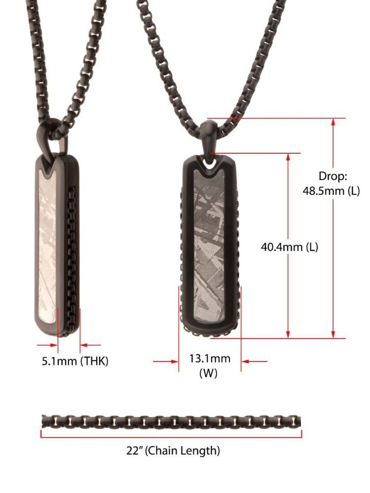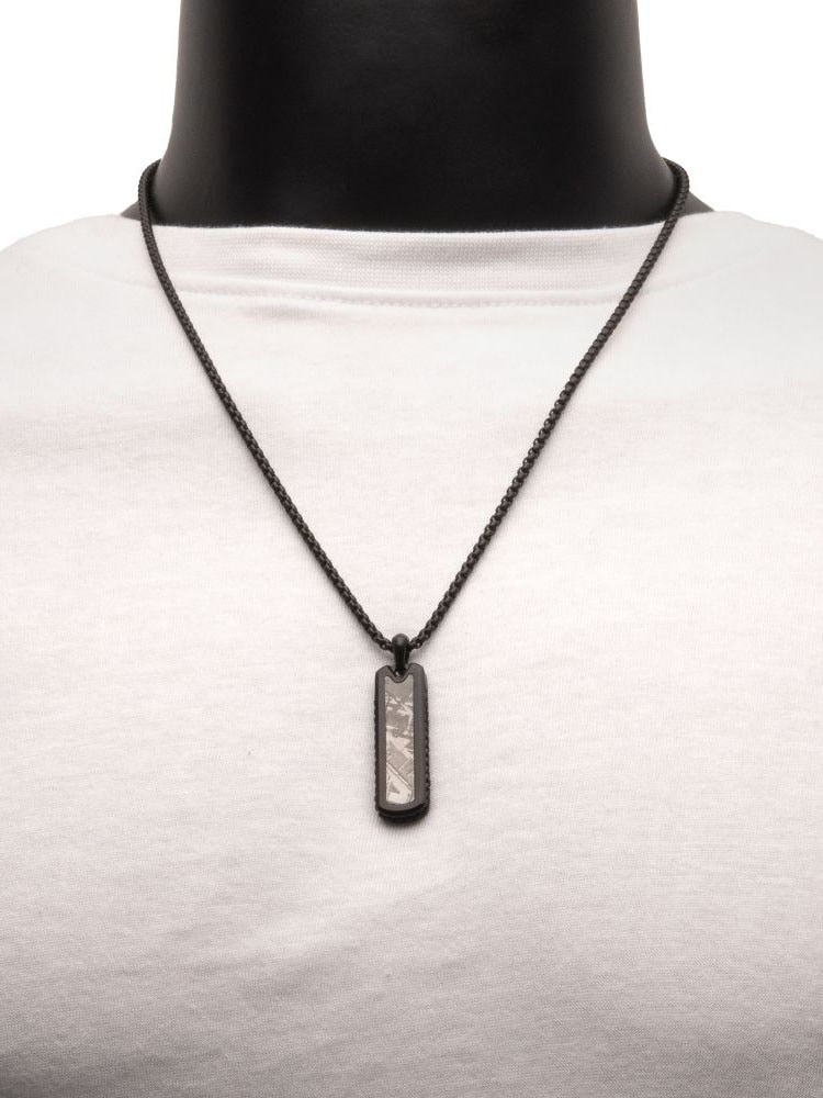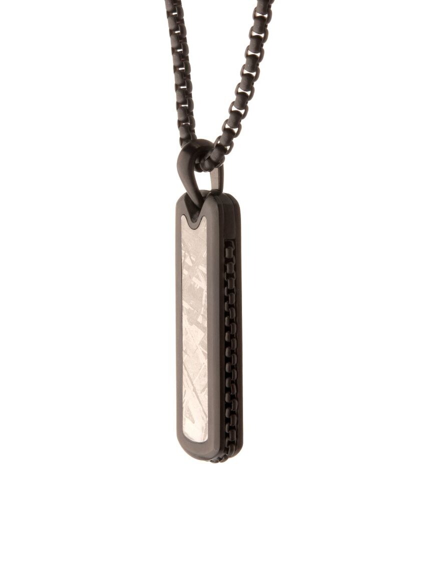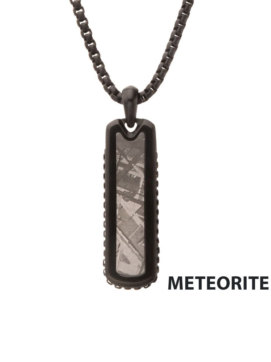 Necklace with black IP plating and a pendant with meteorite inlay. Made of stainless steel.