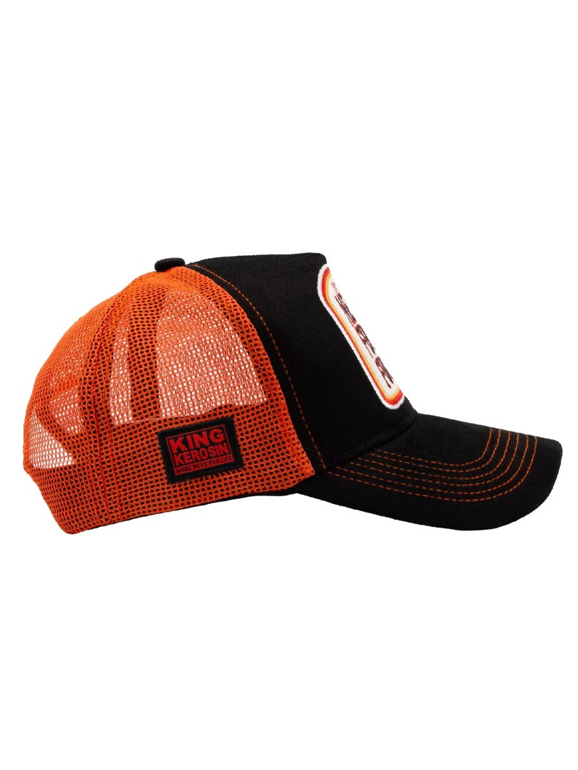 Bold black and orange cap with a strong contrast that instantly catches the eye and an expressive design that sets the tone right away. Features a mesh back panel for comfortable ventilation, pronounced contrast stitching, and an adjustable snapback for an all-day comfortable fit.