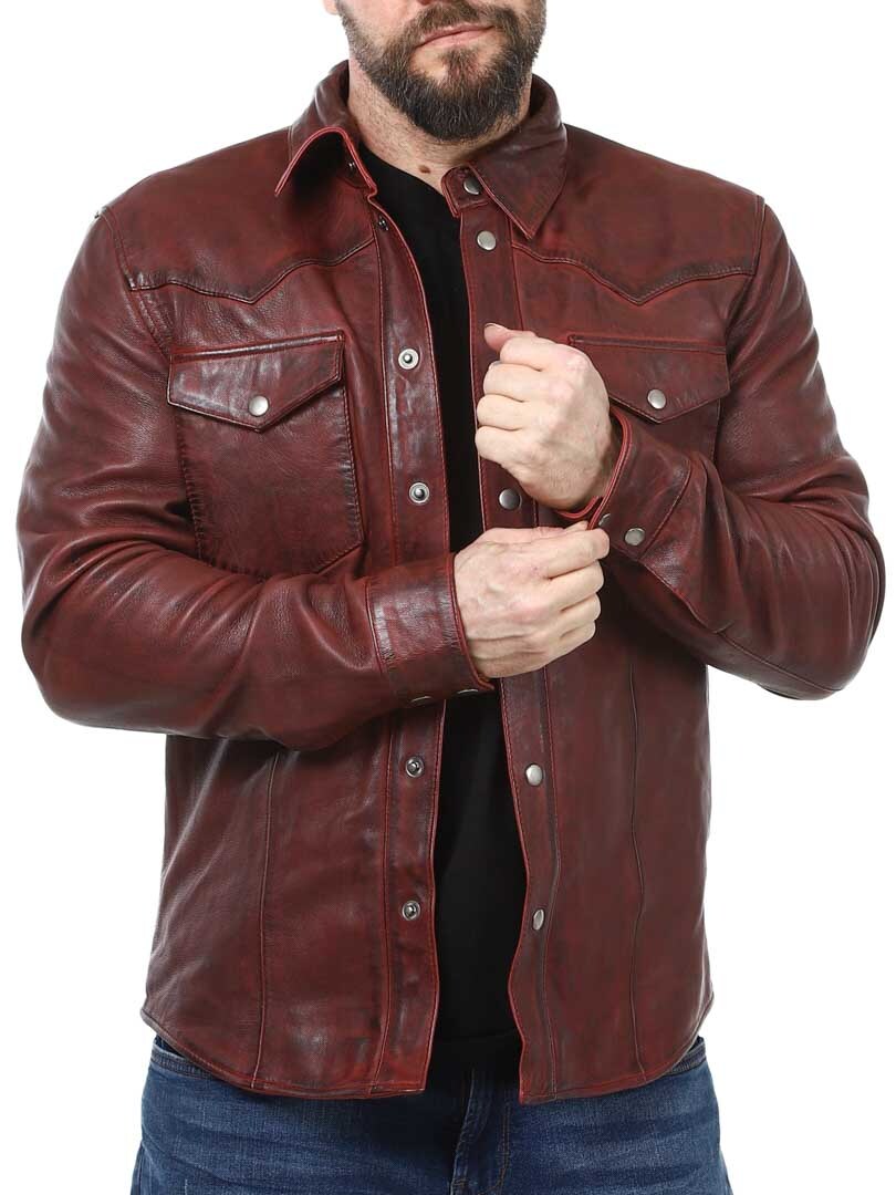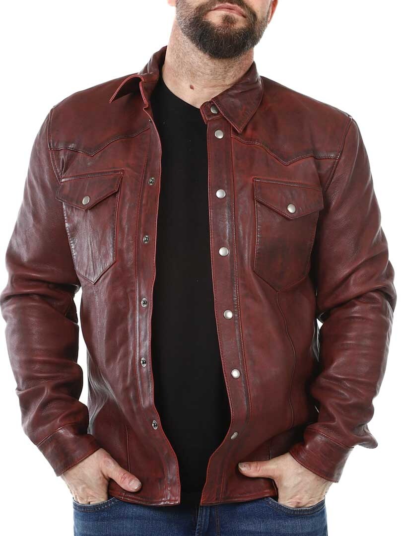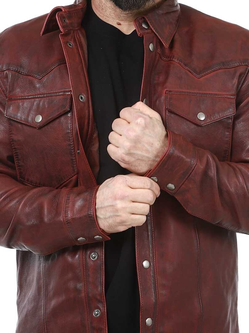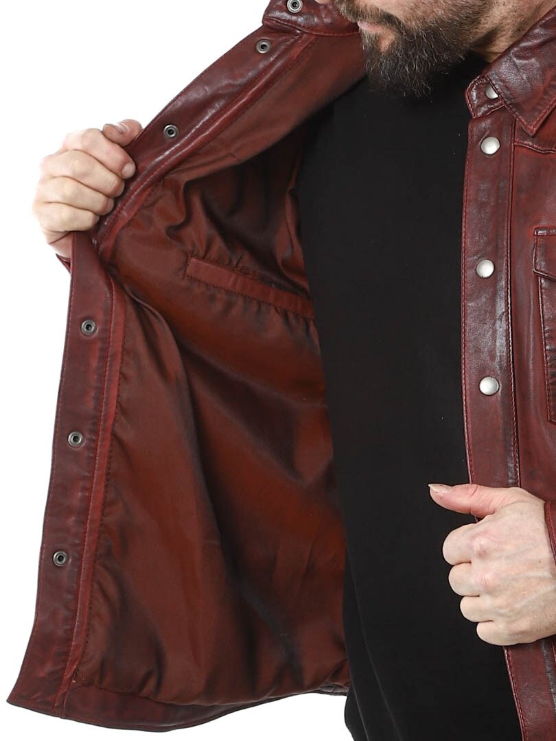 Stylish jacket that can be worn both for everyday and for more dressy occasions. It has a collar, two closable chest pockets and two inner pockets. The jacket is adjustable at the cuffs and closes with buttons. This unique leather jacket is made of quality leather and is only available at Rockdenim!