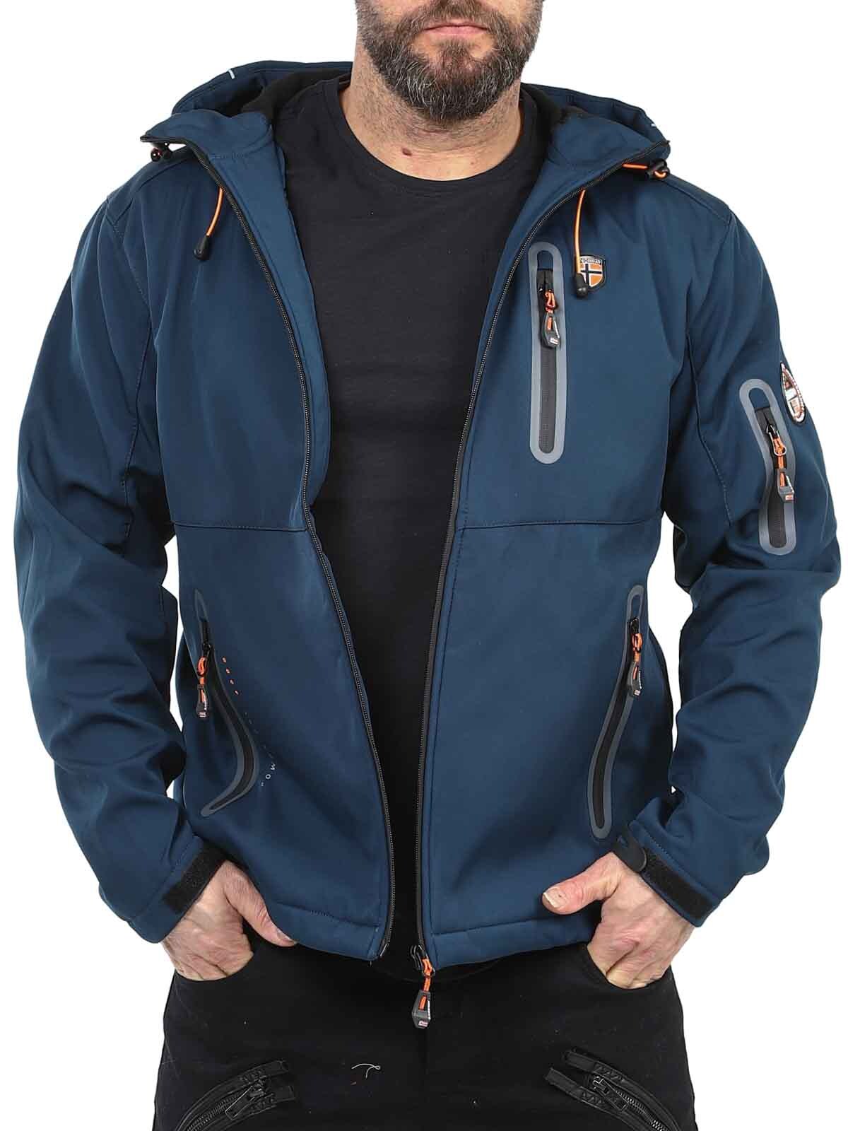 Functional softshell jacket with taped seams and weather and wind resistant properties. Adjustable hood and several closable pockets. Adjustable cuffs and hem.