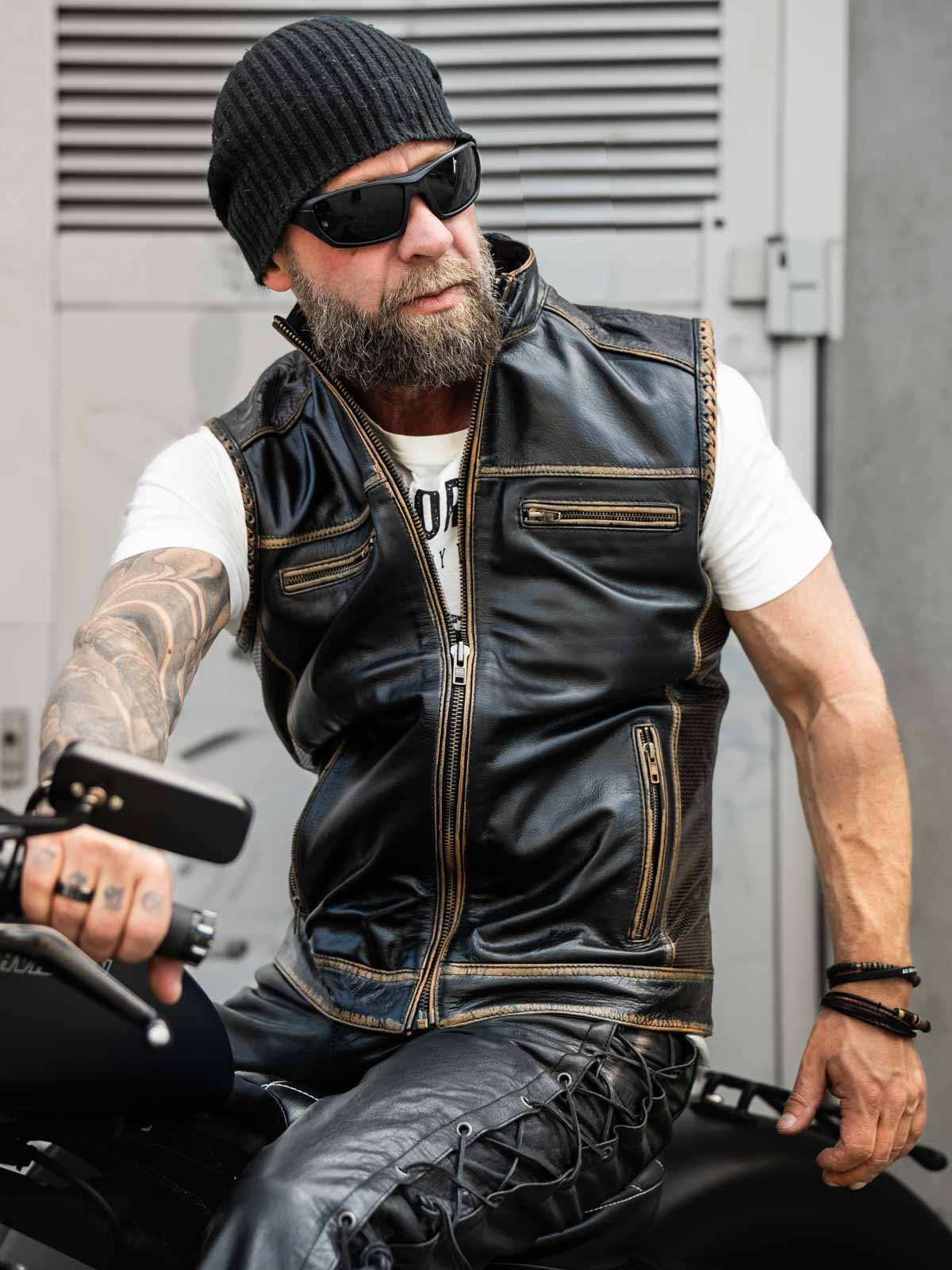 Unique leather vest from RockDenim