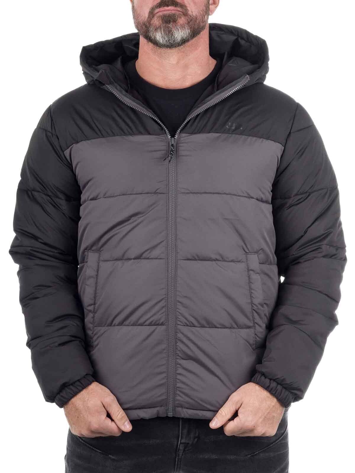 A lightweight and stylish winter jacket that combines warmth with a bold look. The two-tone design in dark grey and black gives it a modern touch, while the light padding keeps you warm. The jacket features practical side pockets, a full front zipper, and an adjustable hood for extra protection against wind and weather. A perfect everyday jacket for the man who wants both function and attitude!