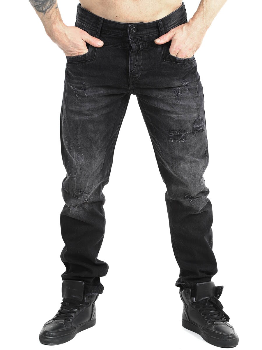 Raw jeans with a regular fit that provide all-day comfort. The jeans feature a stone-washed finish for a cool, worn-in look. Multiple practical pockets offer plenty of storage, while the solid construction makes them a durable choice.