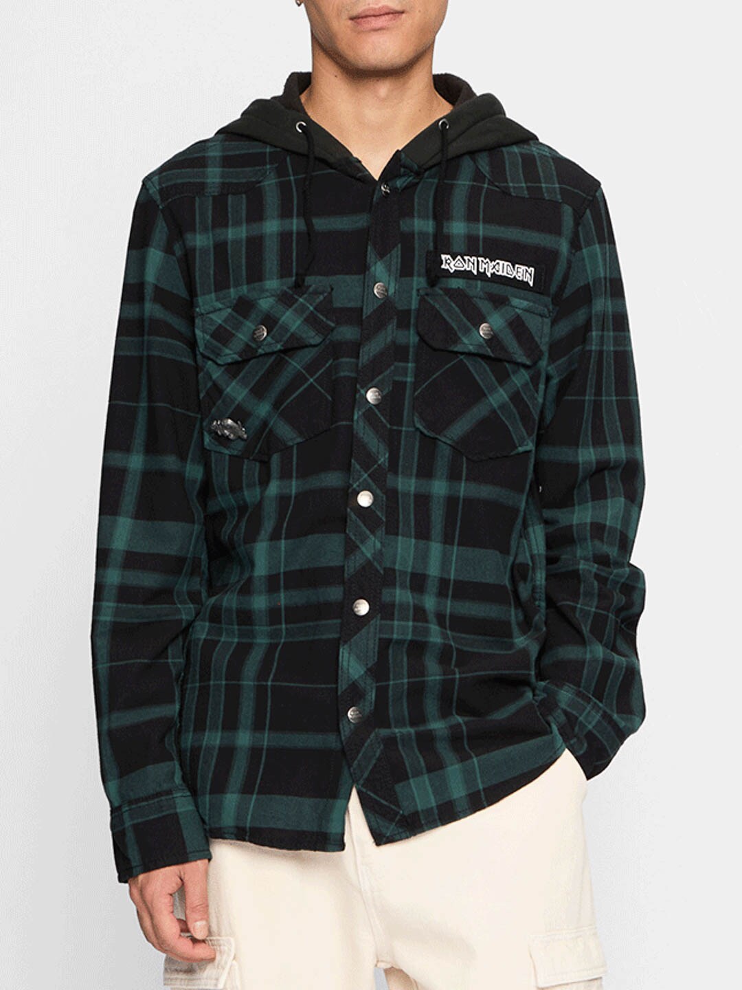 Iron Maiden Hooded Brandit Shirt - Green/Black