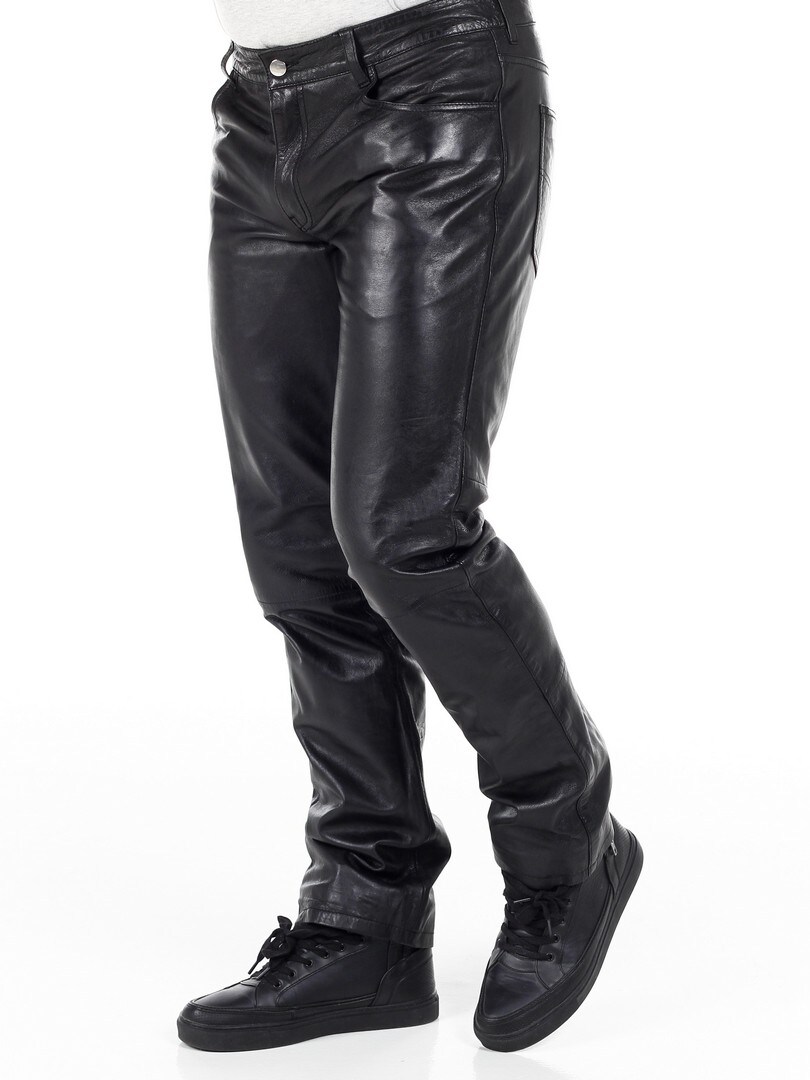 Black genuine leather trousers with classic 5-pocket design. Made from soft leather with a polyester lining for a comfortable fit. If you want a comfortable pair of pants with attitude, you've come to the right place!
