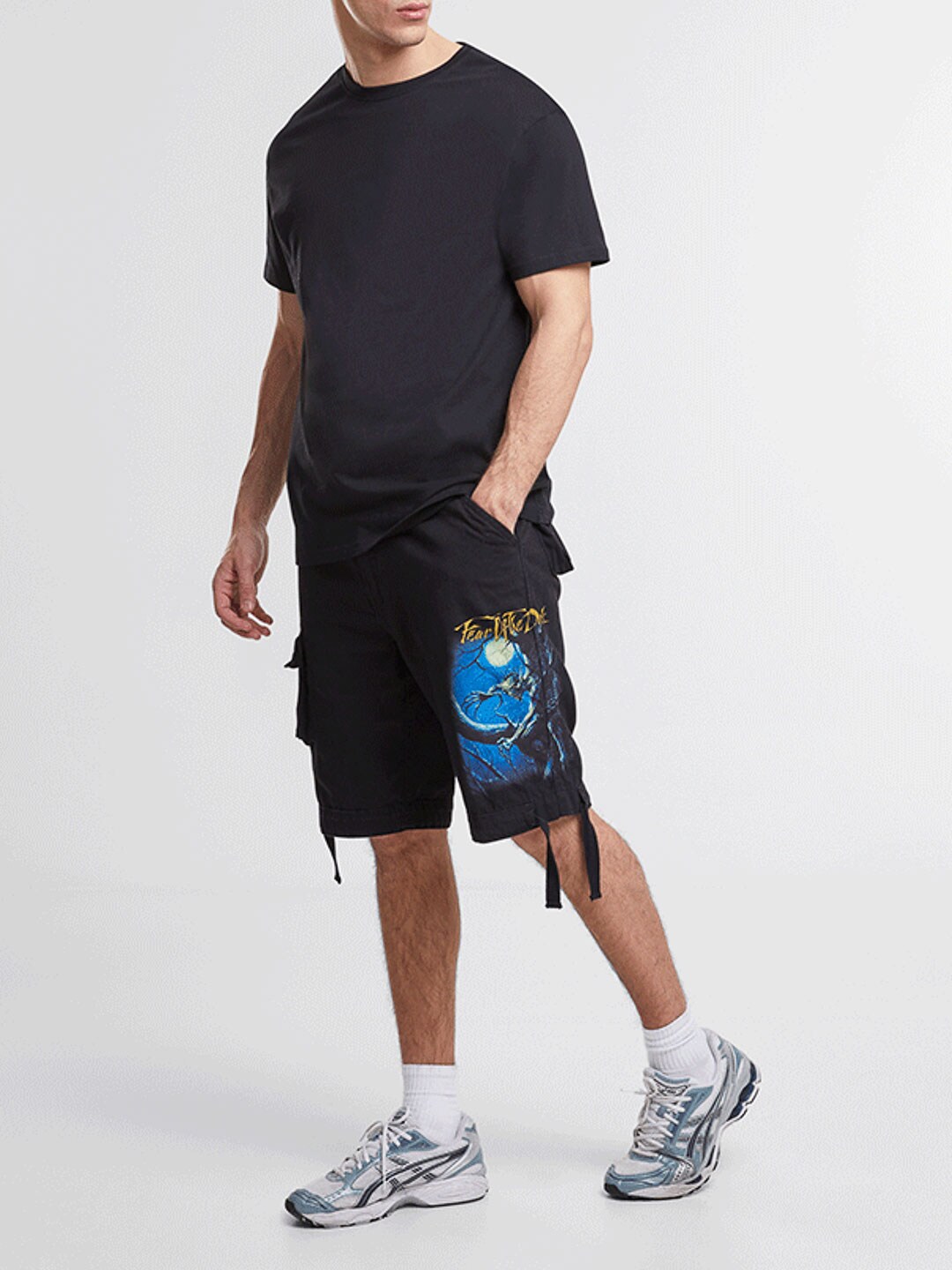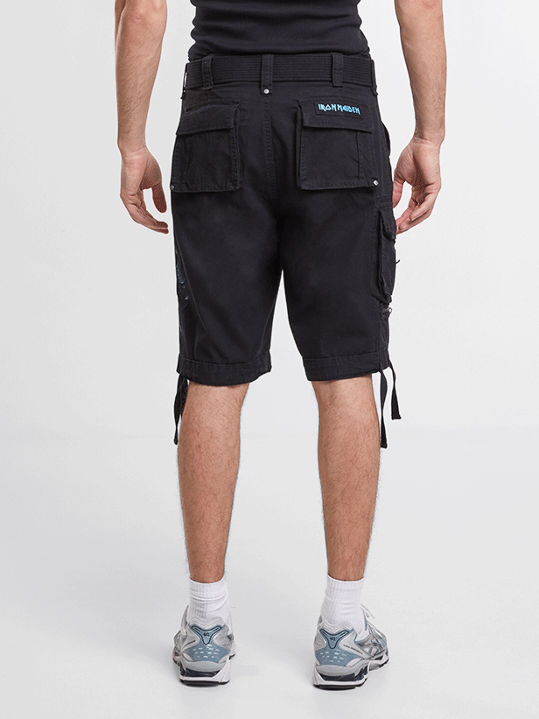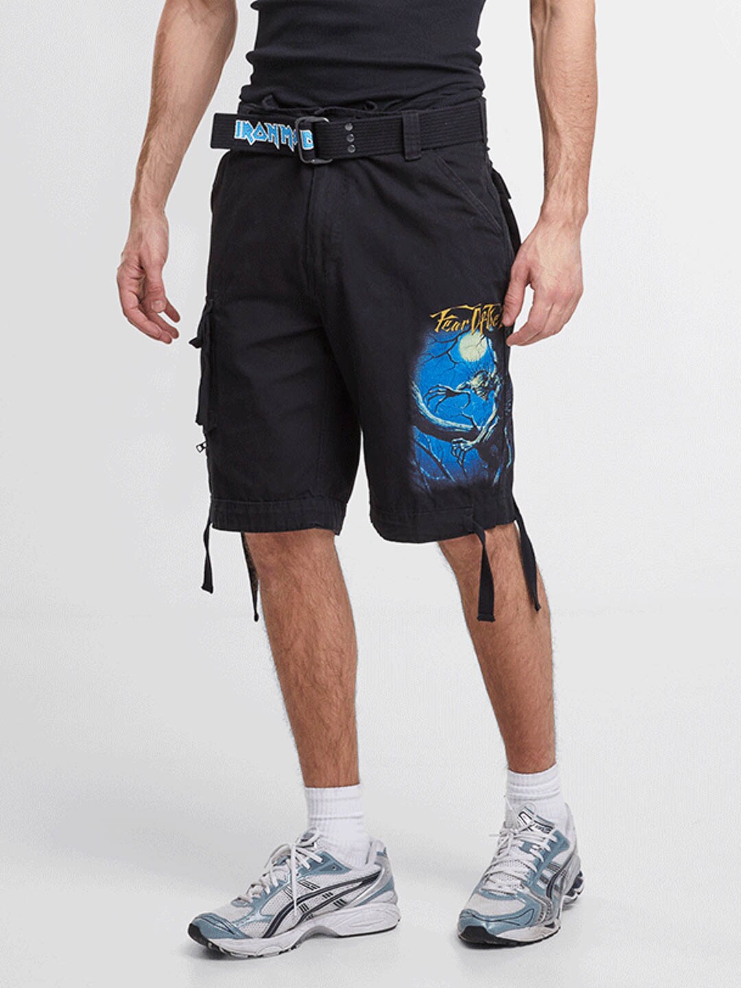 Tough cargo shorts for fans of Iron Maiden and classic rock style. These shorts combine a robust, military-inspired design with iconic details from the album Fear of the Dark. They feature several practical pockets as well as adjustable fabric straps at the waist and leg openings, making it easy to adjust the fit for optimal comfort.