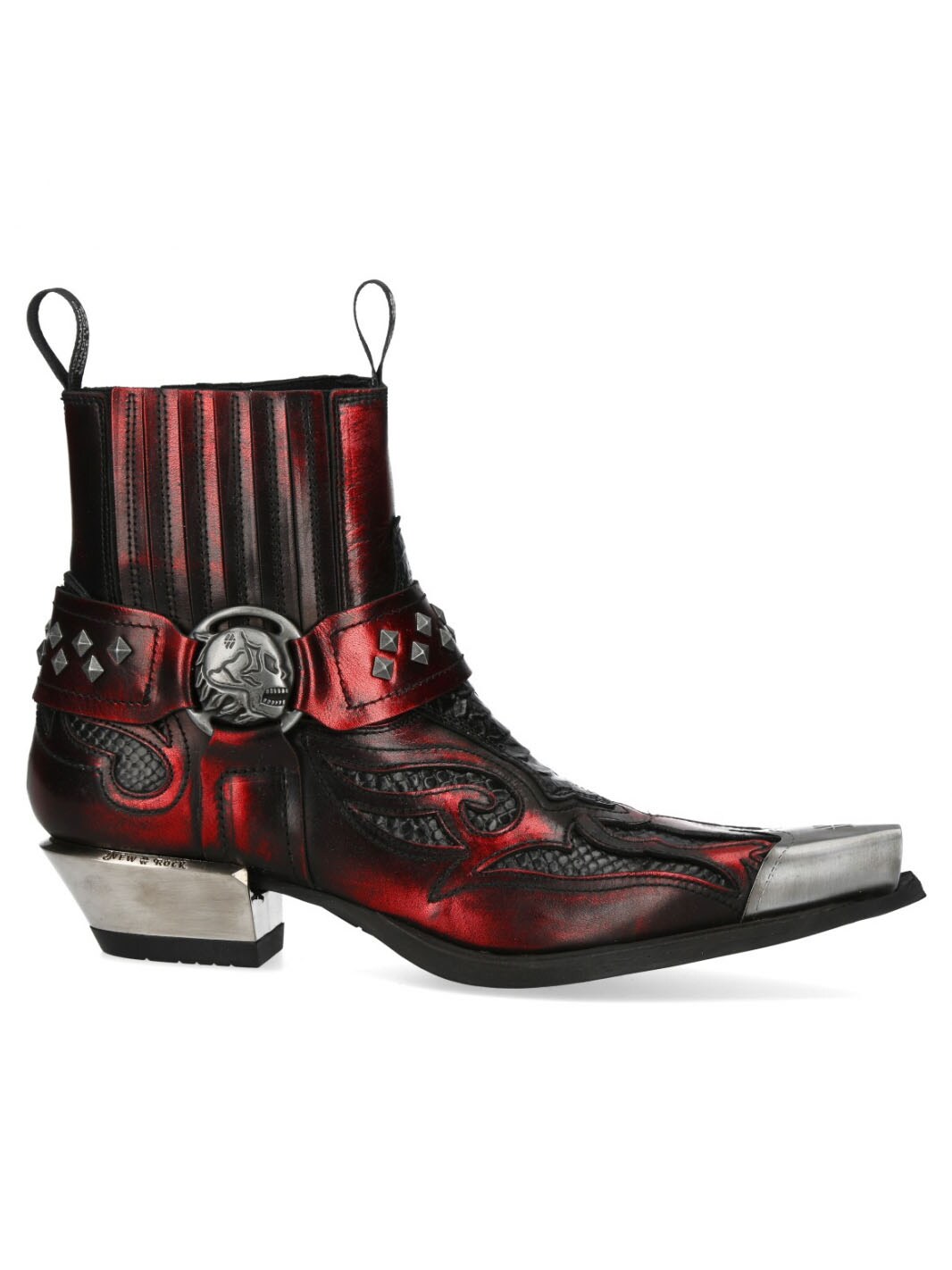 Rocky shoes in genuine leather with details that stand out from the crowd. Designed with patterns in the leather, rivets and metal toe, and heel. A pull-on shoe with an elasticated shaft. This unique shoe is available in a limited edition!
