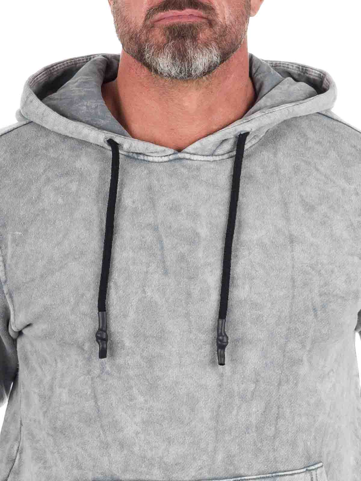 Hoodie with a washed look and text print on the sleeves. Features an adjustable hood, kangaroo pocket, and ribbed cuffs for a comfortable fit. Made from 100% cotton.
