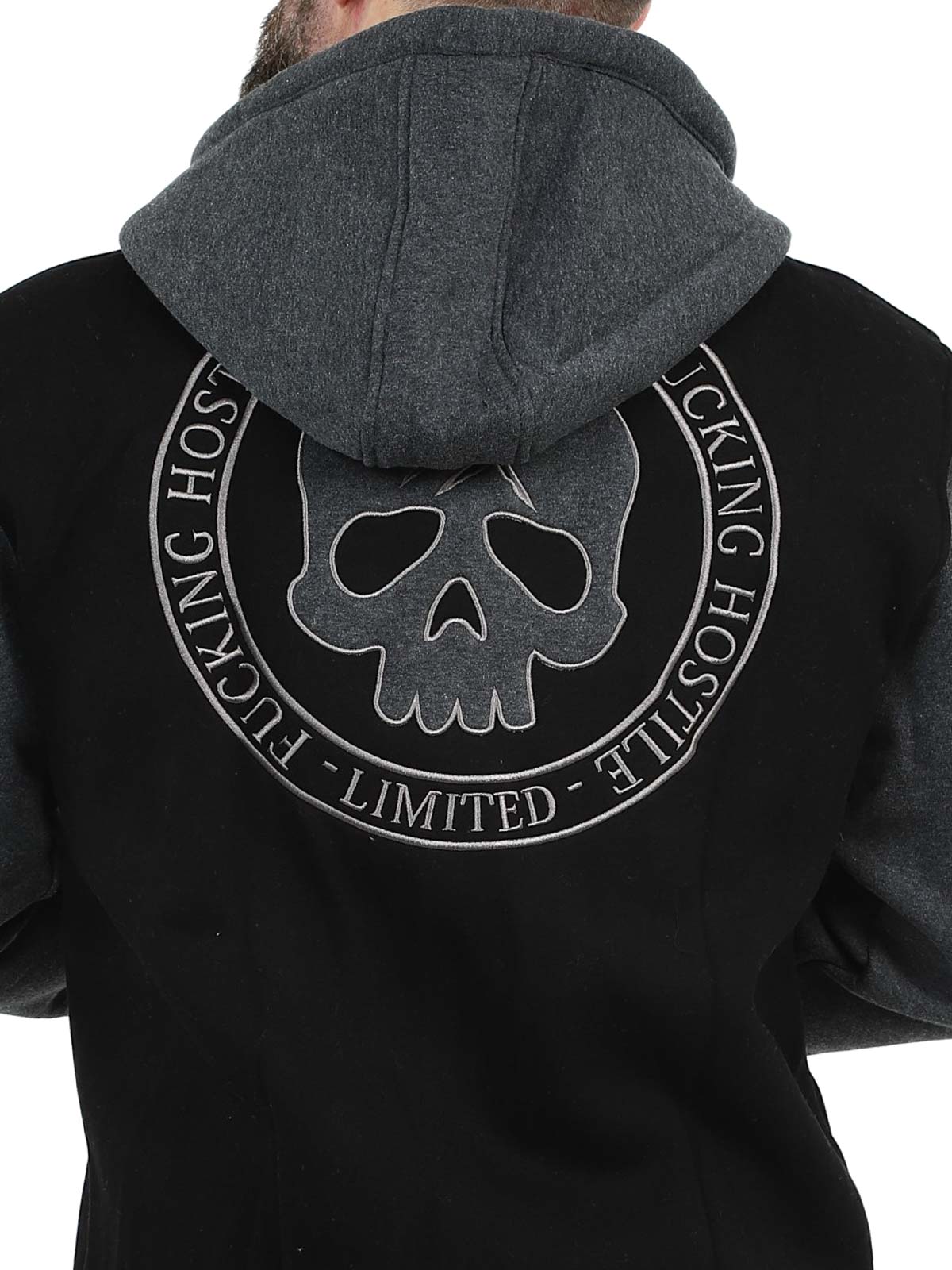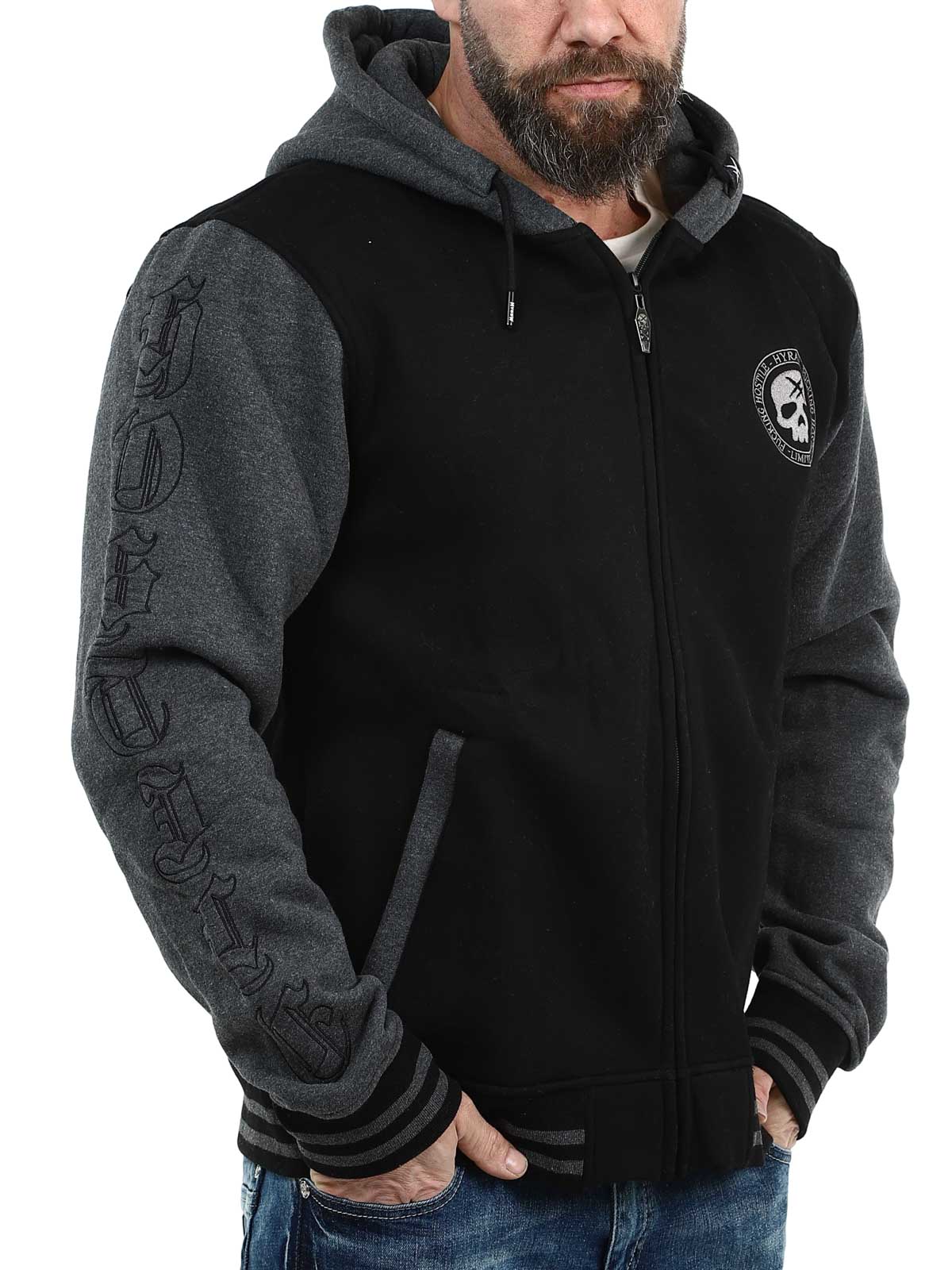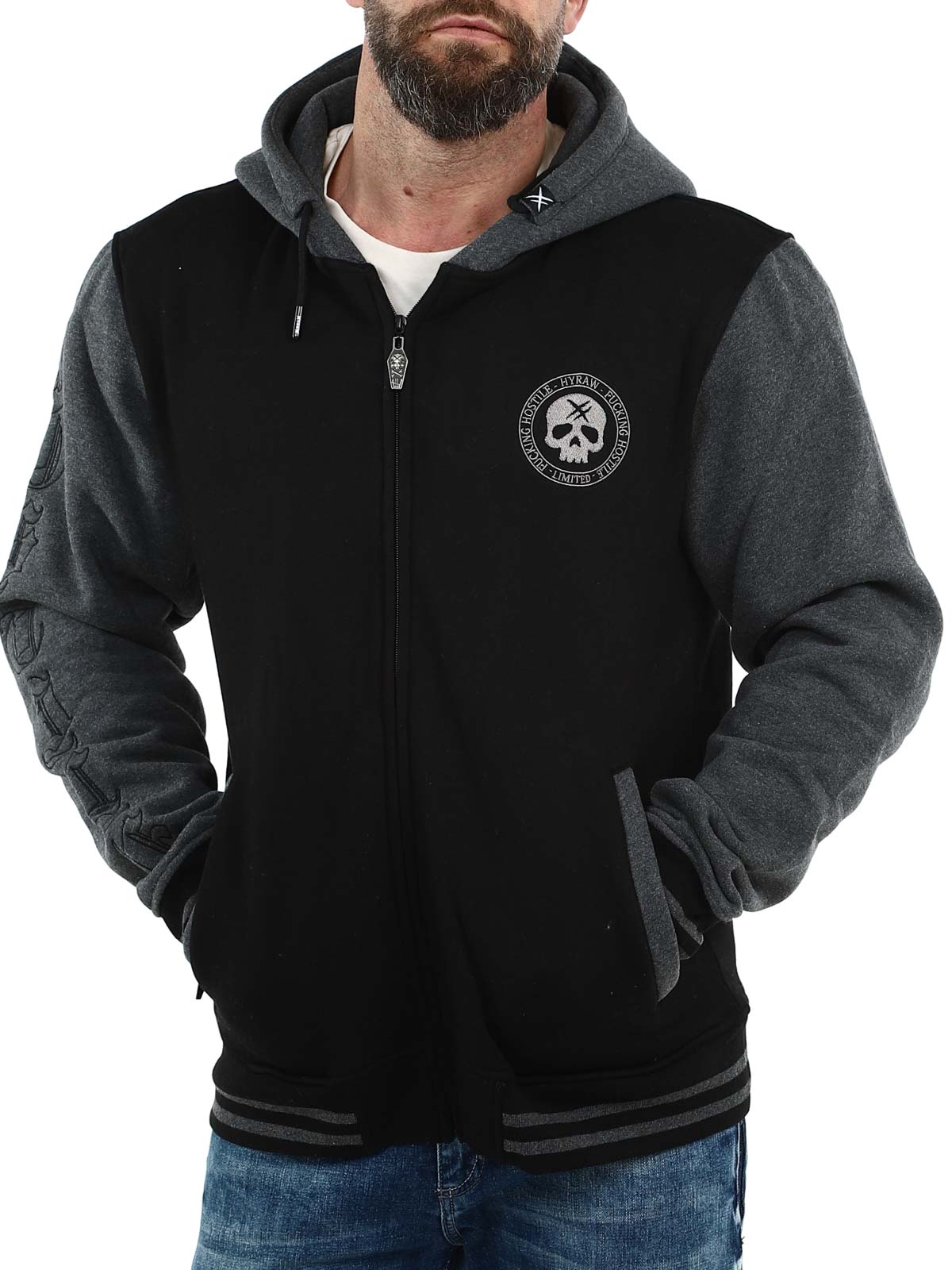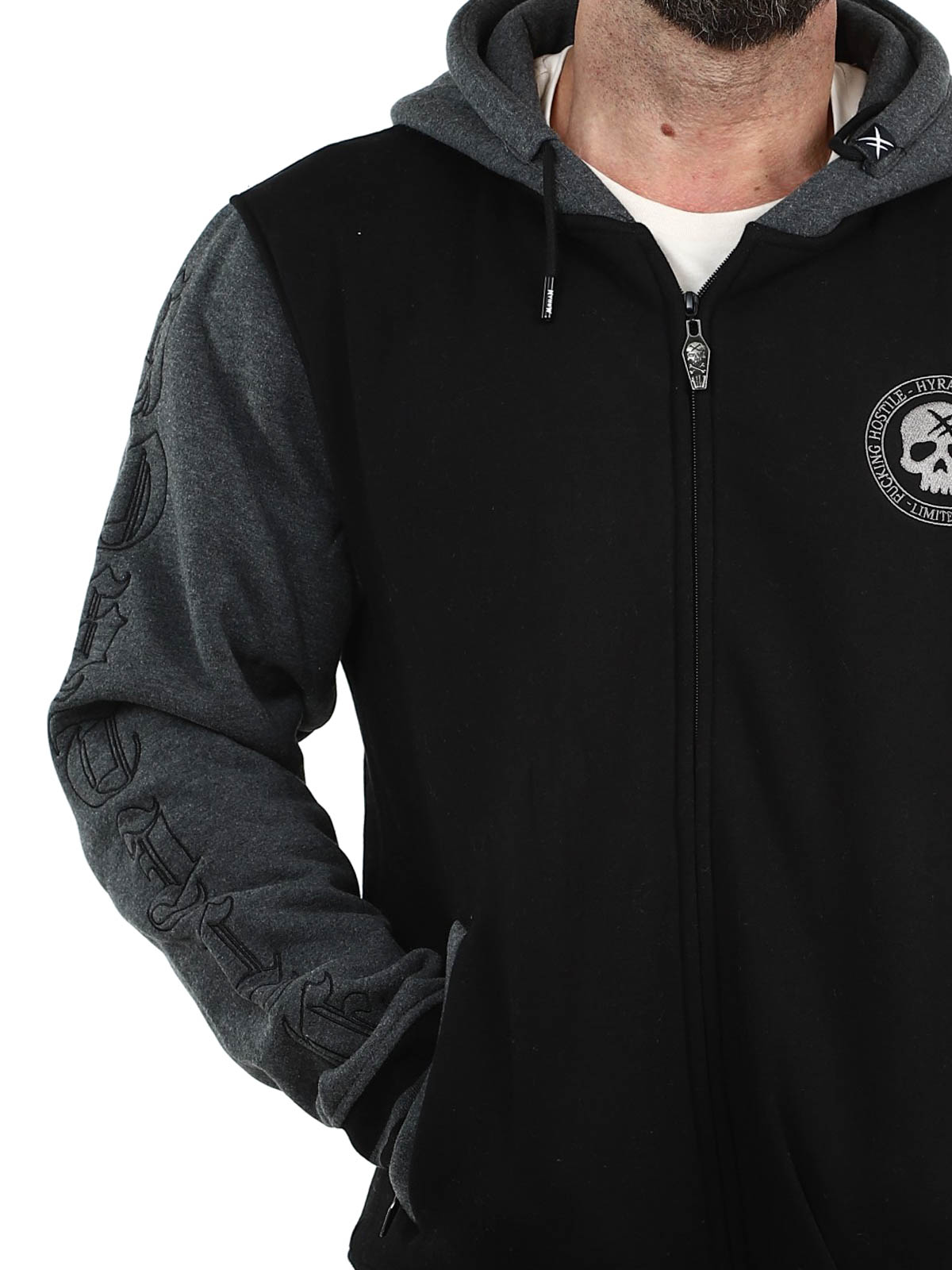 Hyraw Grey Skull Zip Hoodie - Black/Dark Grey
