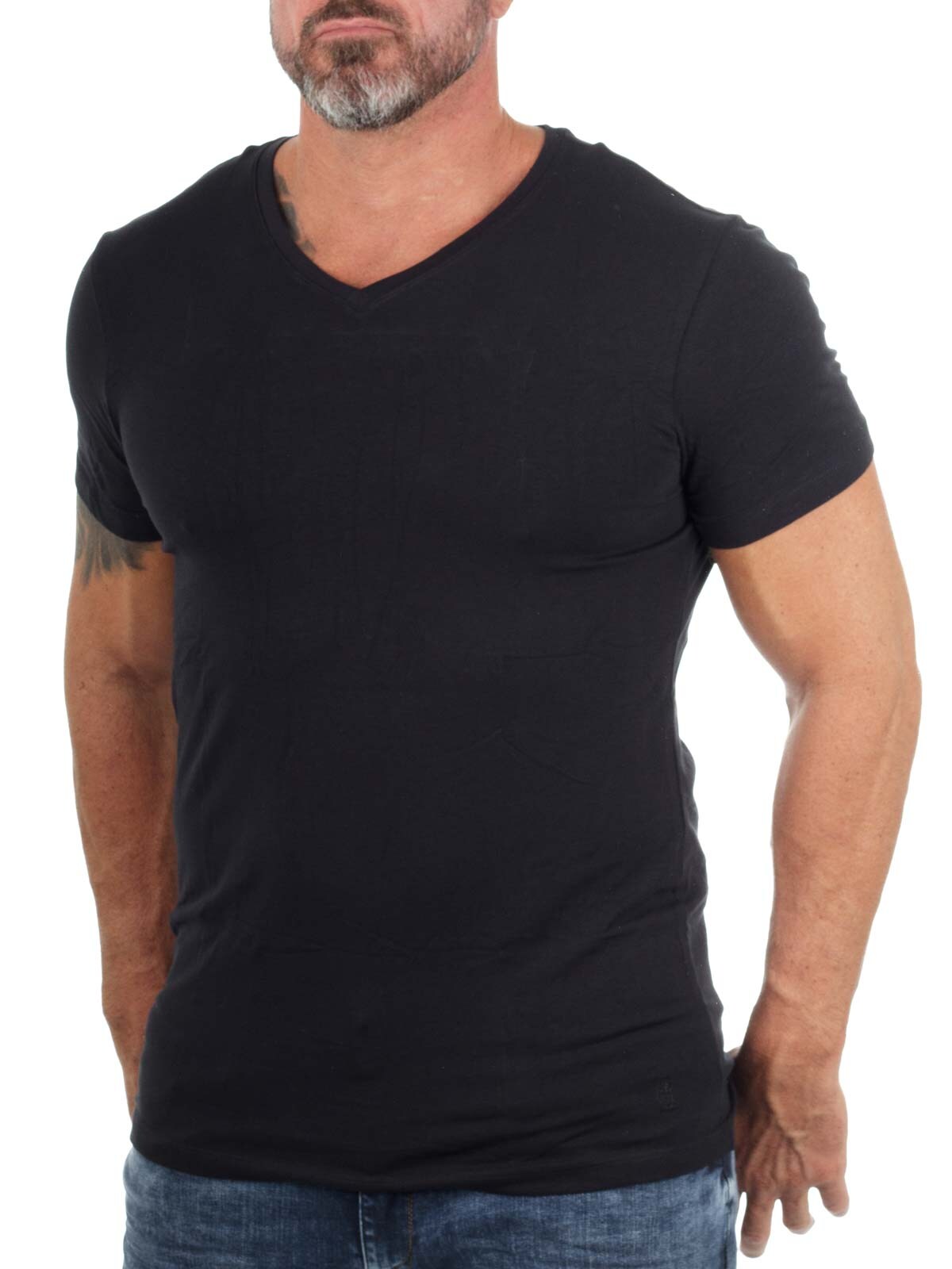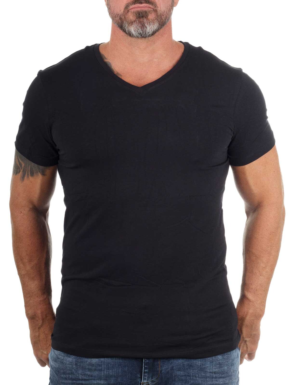 Solid-colored t-shirts in a convenient two-pack. Stretchy model with a slim fit and V-neckline. Slightly thinner fabric quality, making them ideal for wearing under a shirt or a knitted sweater.