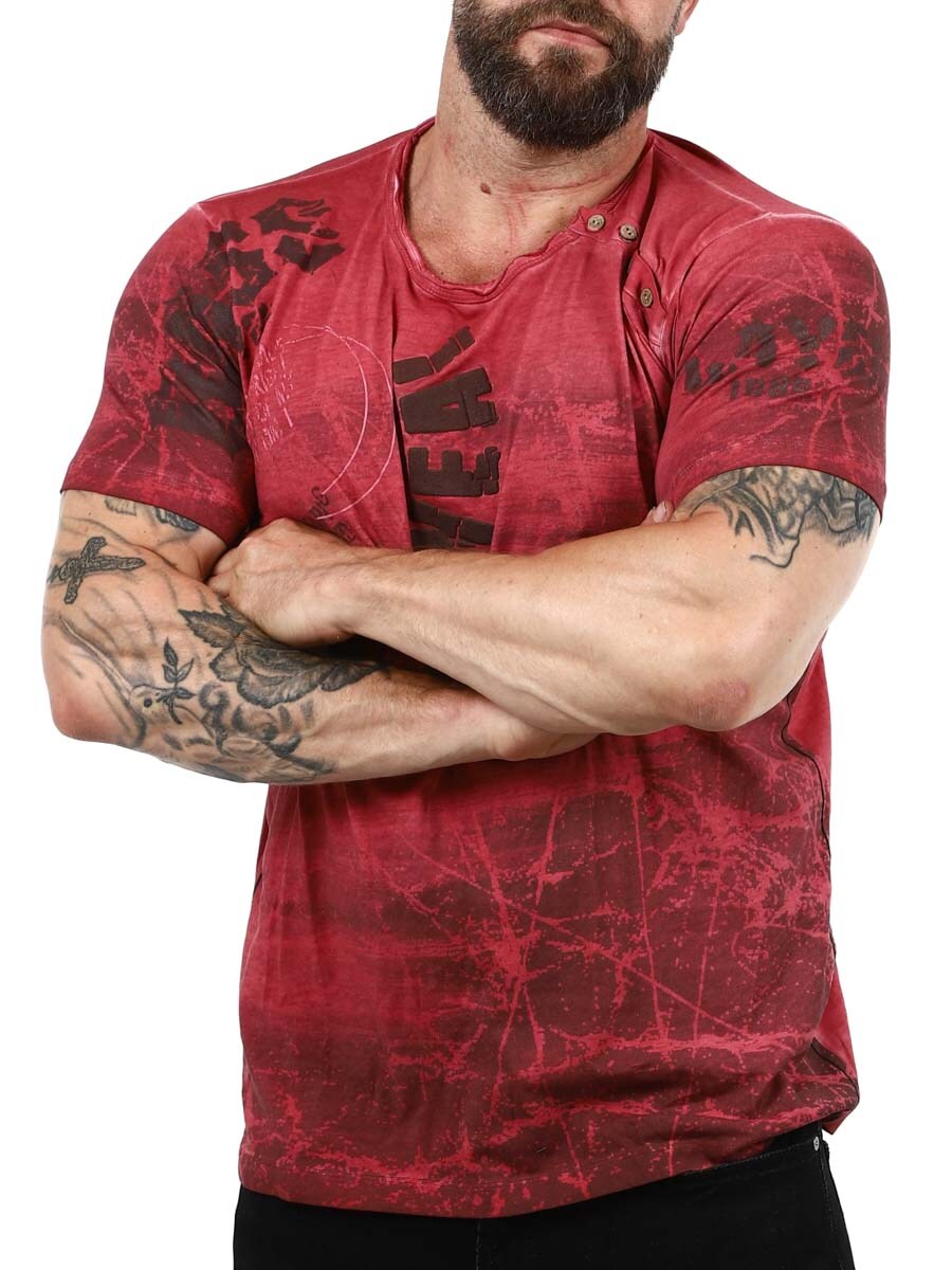 Unique t-shirt nicely detailed with 3D print and pattern giving a cool, modern look. It has a classic fit with a round neckline and buttoning at the neck. Available in several color variations!