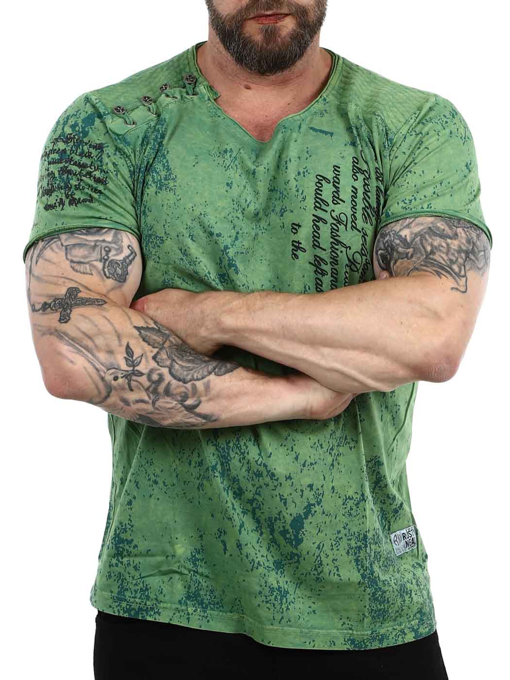 Patterned t-shirt in stretch cotton fabric with text print on the left chest and right arm. Marked shoulders with buttons and plaid pattern, rounded neck, raw edges and fabric patch with the logo in the waistband netill. Each piece is unique and therefore may differ in the shade of the pattern and buttons!