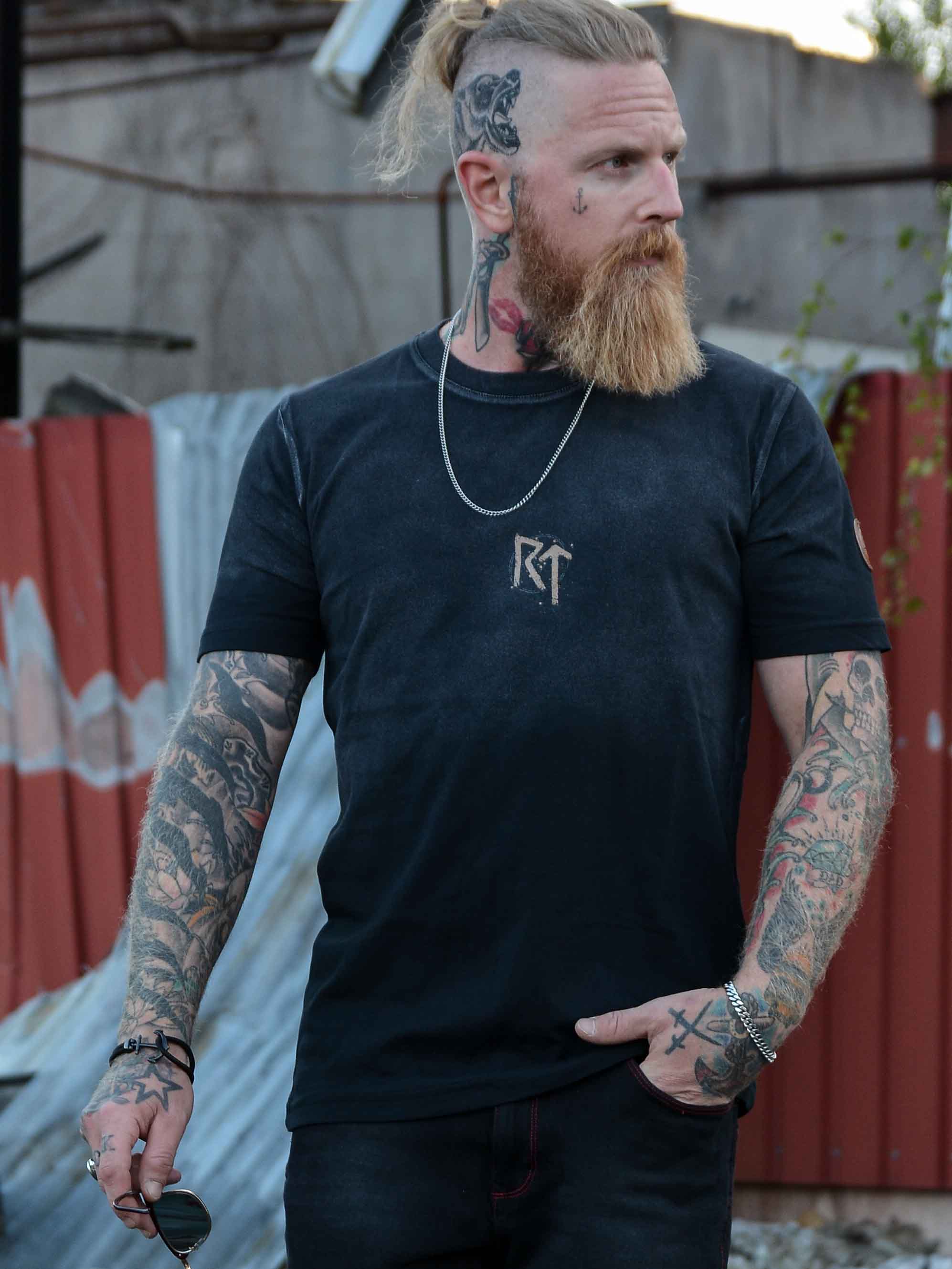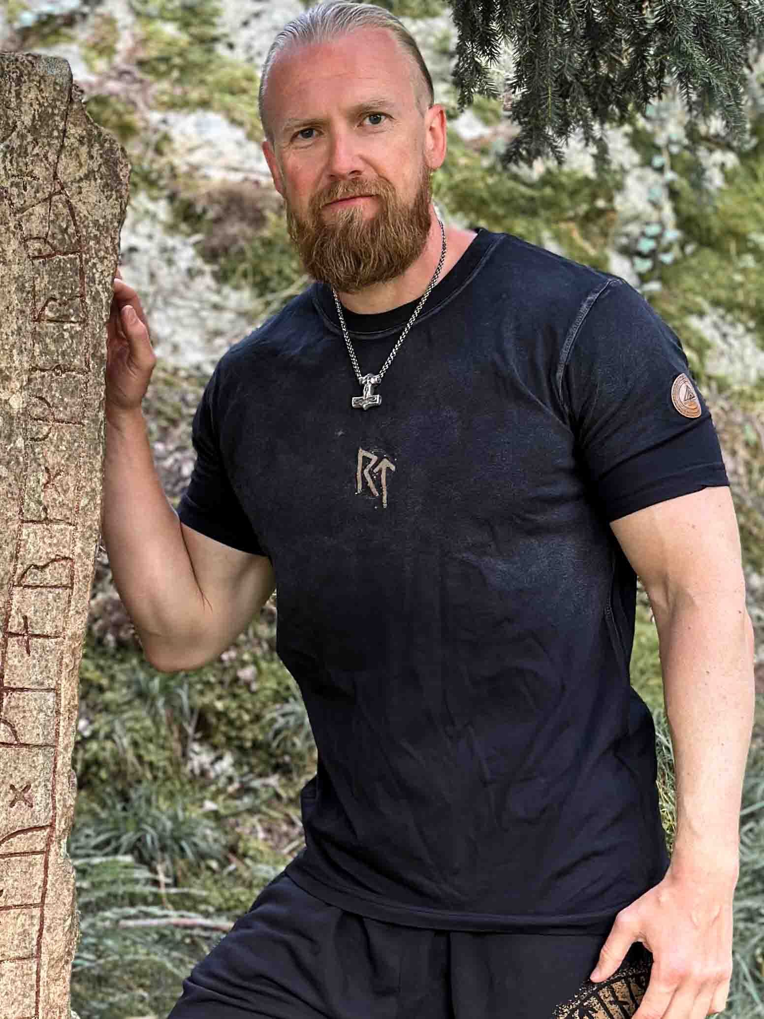 ⚔ On this garment, a special rune emblem features Raido ᚱ and Tiwaz ᛏ – symbols of strength for the road ahead, with protection from Tyr and the strength to follow your journey safe with courage and justice. ⚔