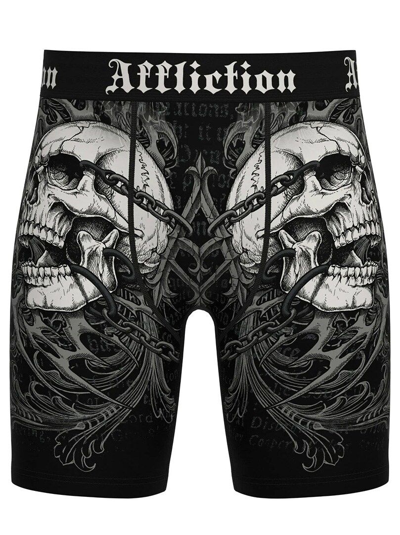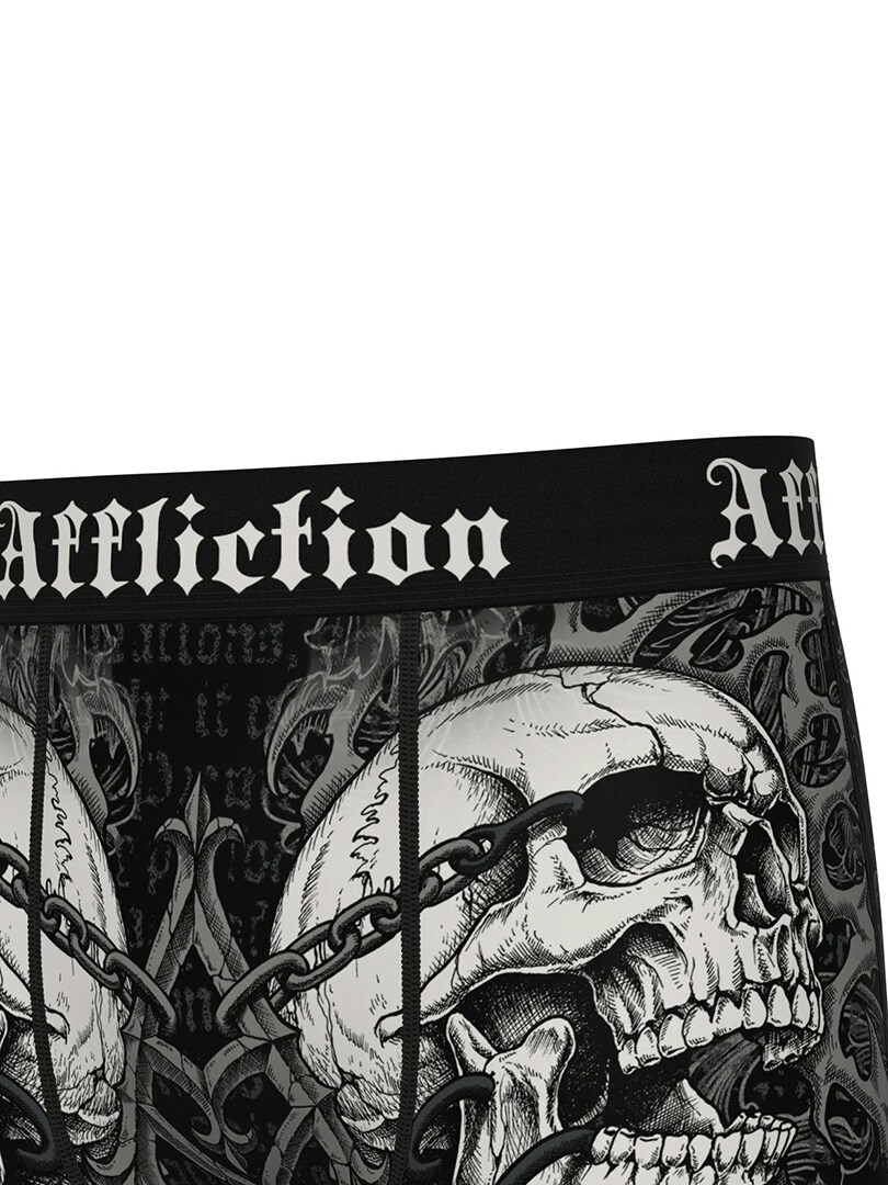 Boxer shorts with a skull motif in classic Affliction style. Made from a soft and stretchy material that provides great all-day comfort. The wide waistband with the Affliction logo keeps them in place and completes the look. Perfect for those who want underwear that stands out just as much as the rest of their outfit.