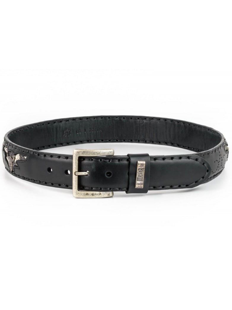 Et karakterfuldt bælte til dig, der søger noget ud over det sædvanlige. Fremstillet i en kombination af robust sort Vacuno-læder og ægte naturligt pytonlæder, hvilket skaber en eksklusiv finish og unik tekstur. Det prægede mønster og de dekorative metaldele giver bæltet et tydeligt western-inspireret look. Et perfekt statementaccessory, der løfter både jeans og chinos!