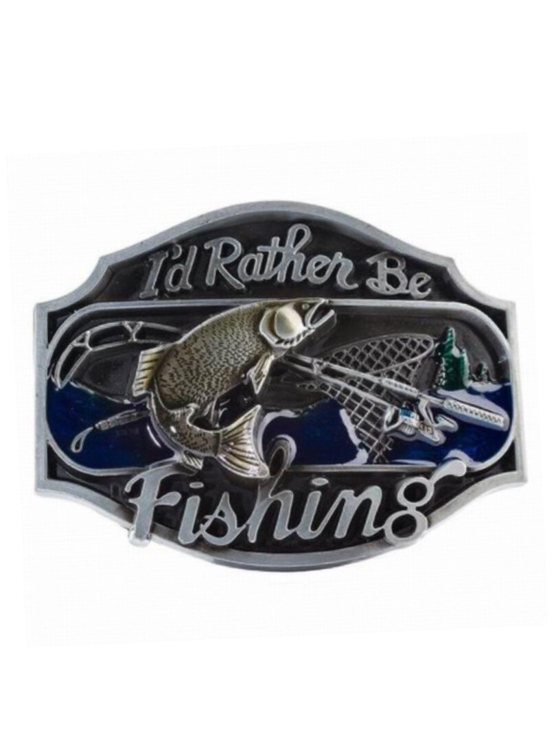 Giv din stil et personligt præg med dette bæltespænde i antik vintagefinish. Det detaljerede design viser en fisk sammen med teksten “I’d rather go fishing”, hvilket skaber et humoristisk og tydeligt udtryk for alle fiskeentusiaster. Spændet passer til bælter op til 4 cm i bredden, hvilket gør det nemt at kombinere med de fleste standardbælter med udskiftelige spænder.