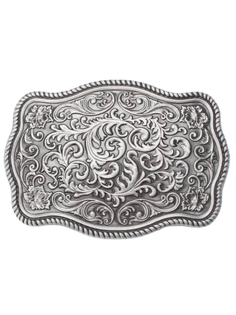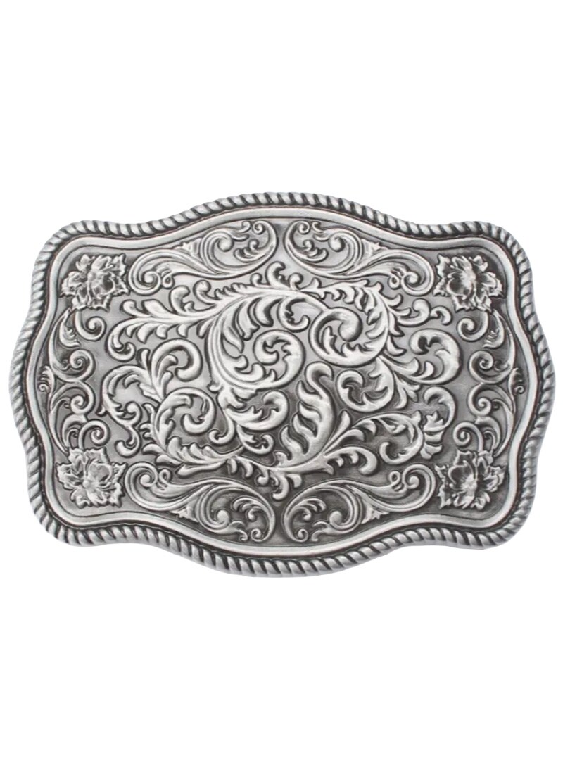 Kraftfuldt bæltespænde i tidløs vintagestil. Det detaljerede design er prydet med et elegant, indgraveret ornamentmønster, som skaber et tidløst og sofistikeret udtryk. Spændet passer til bælter op til 4 cm brede, hvilket gør det nemt at kombinere med de fleste standardbælter med udskiftelige spænder.