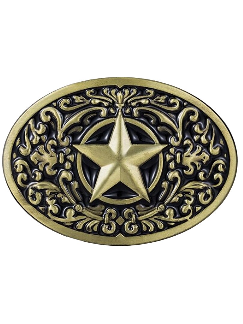 Ovalt bæltespænde i klassisk westernstil. Designet er inspireret af Texas og dekoreret med stjerner, som skaber et klassisk og kraftfuldt udtryk. Spændet passer til bælter op til 4 cm i bredden, hvilket gør det nemt at kombinere med de fleste standardbælter med udskiftelige spænder.