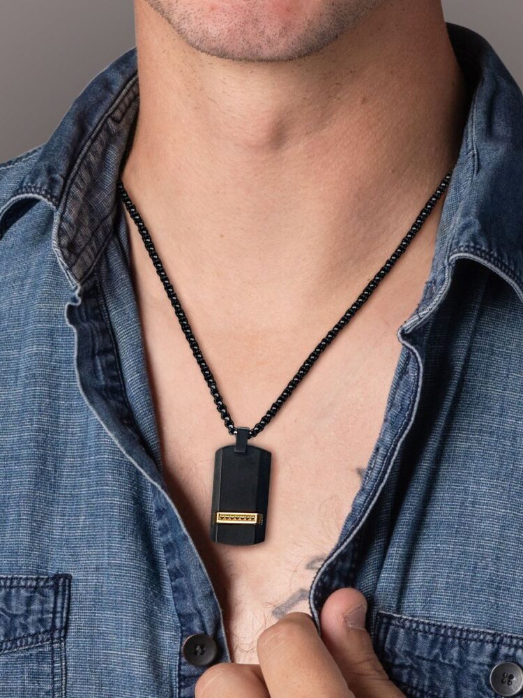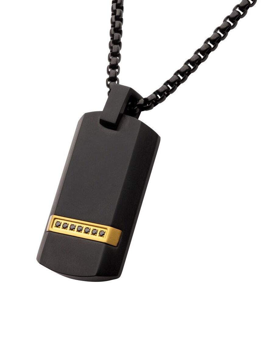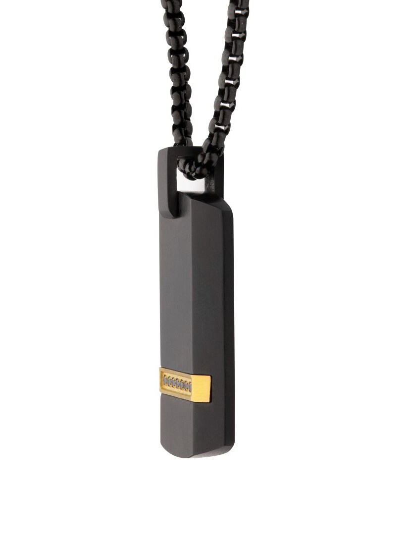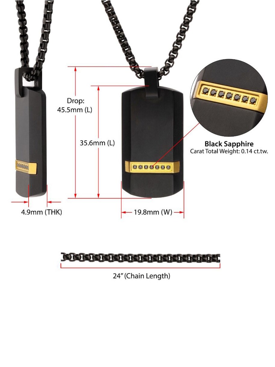 Kædehalskæde i rustfrit stål med en sort IP-belægning. Designet med safir på vedhænget og har en mat finish.