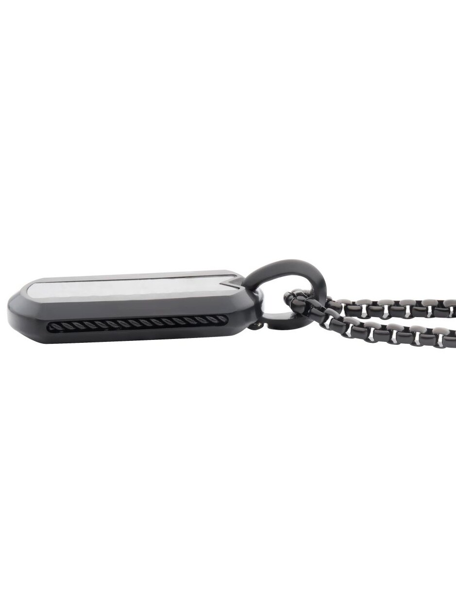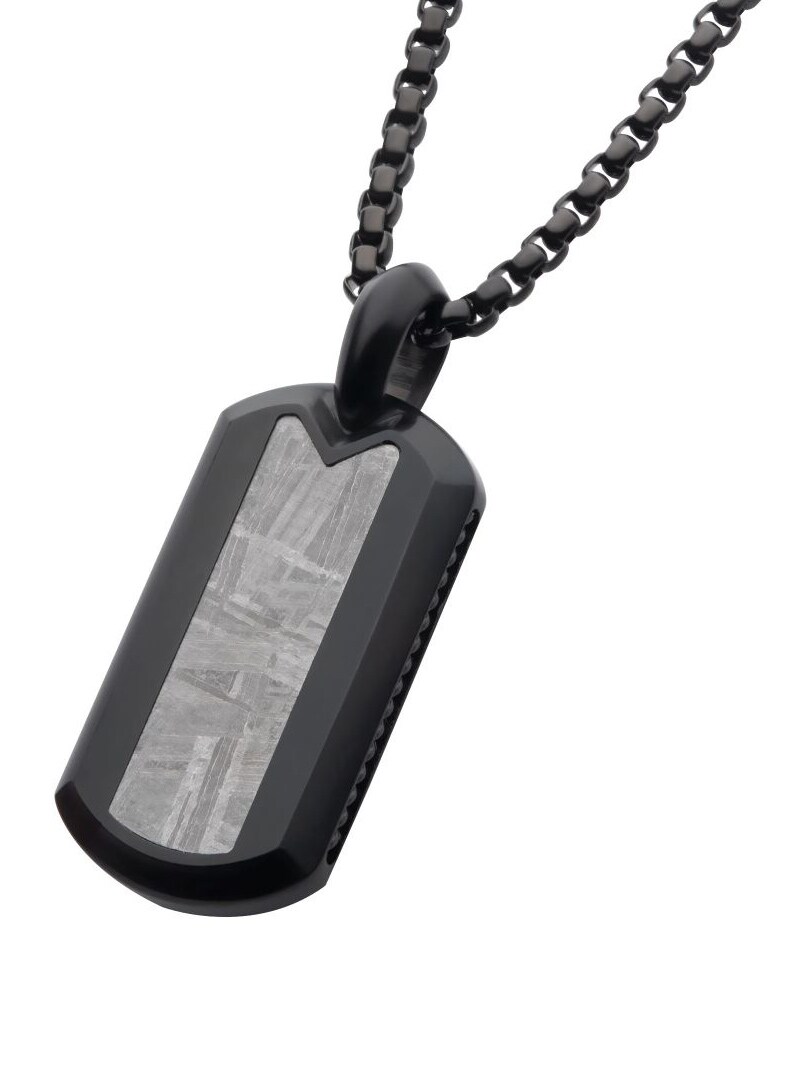 Halskæde med en sort IP-belægning og et vedhæng med en meteoritinlægning. Fremstillet af rustfrit stål.