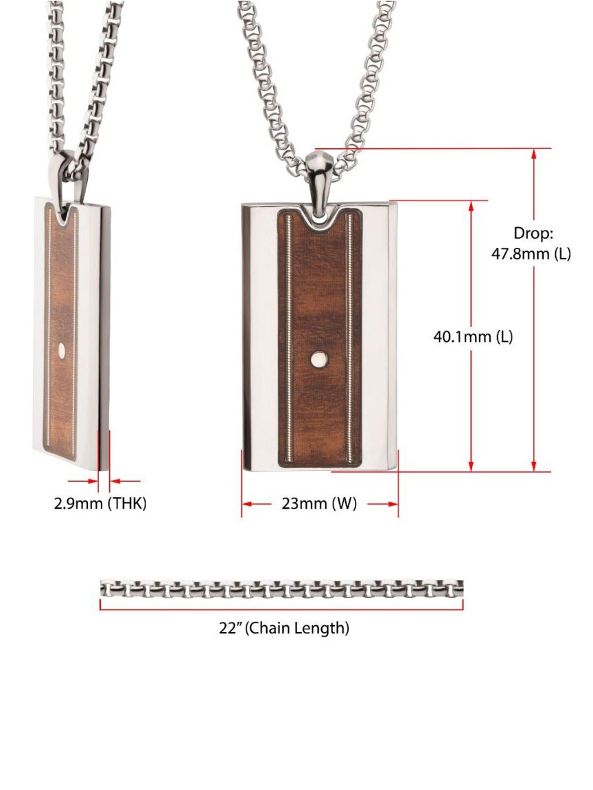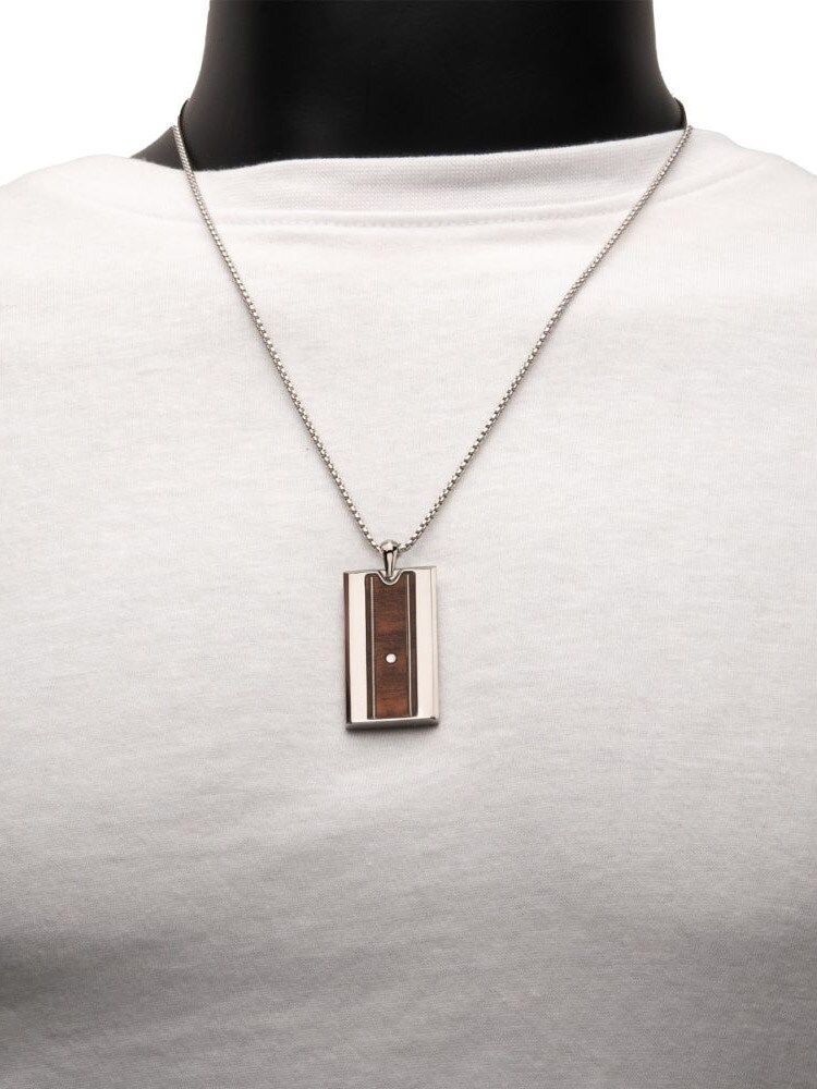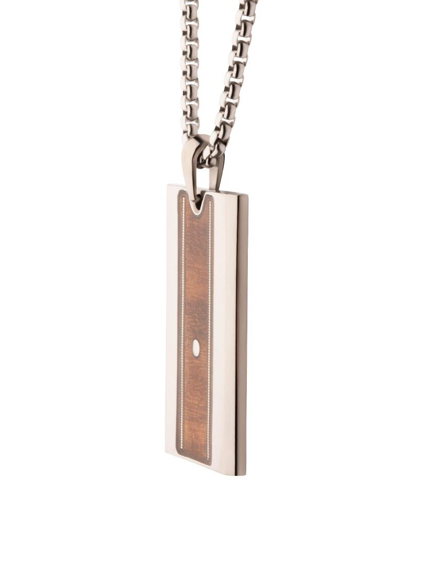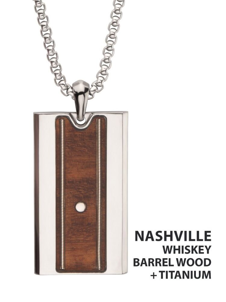 Halskæde i rustfrit stål med et slidstærkt titaniumsvedhæng. Vedhænget er udsmykket med ægte træ fra whiskeyfade og guitarstrenge, der forstærker den karakteristiske Nashville-stemning.