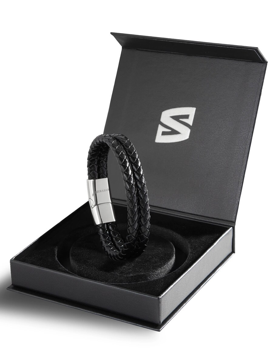 Et elegant og alsidigt armbånd i flettet læder med en poleret magnetlås i rustfrit stål. Låsen er nem at betjene med én hånd, og der medfølger en ekstra forlænger, så du nemt kan justere længden til den ønskede pasform. Perfekt til dig, der vil have et diskret, men karakterfuldt accessory, som løfter dit look!