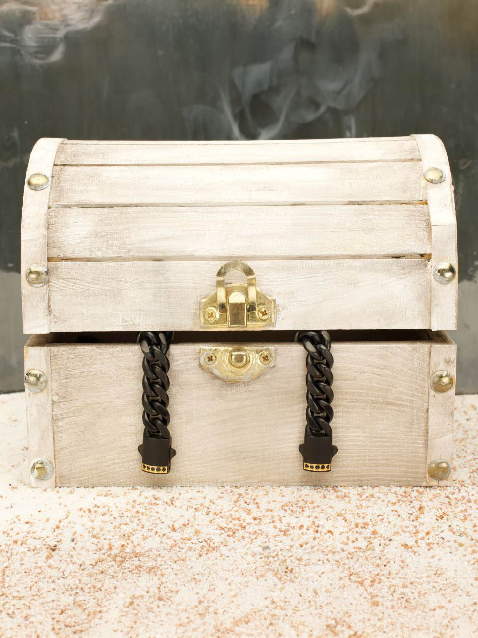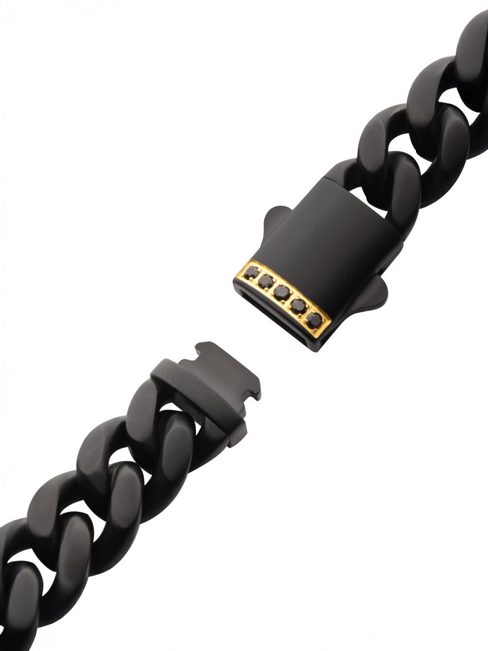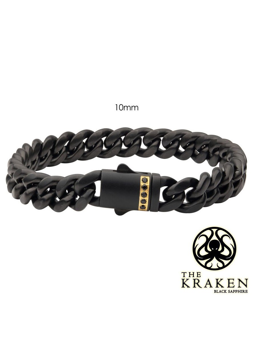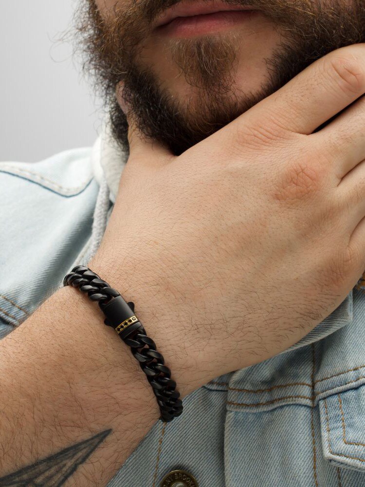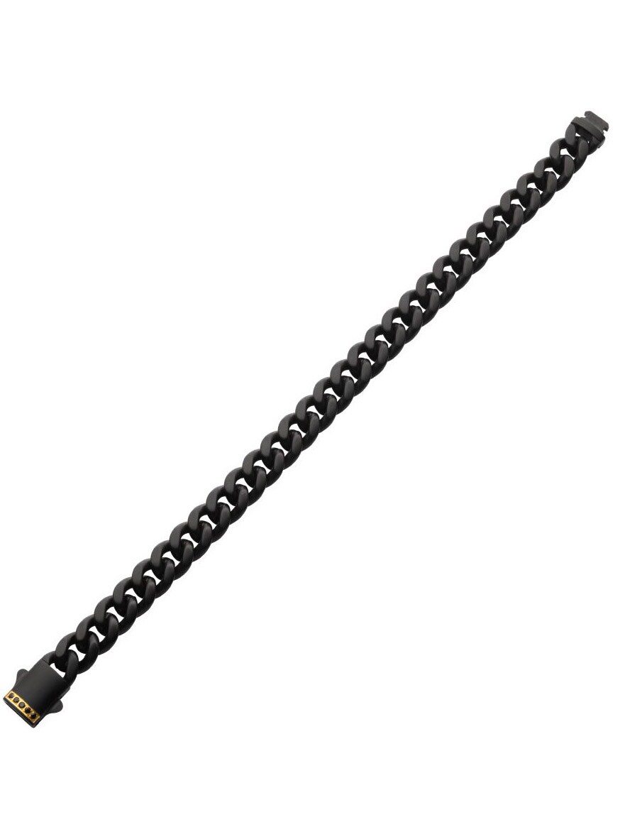 Kædearmbånd i rustfrit stål med en sort IP-belægning. Designet med safir på låsen og har en mat finish.