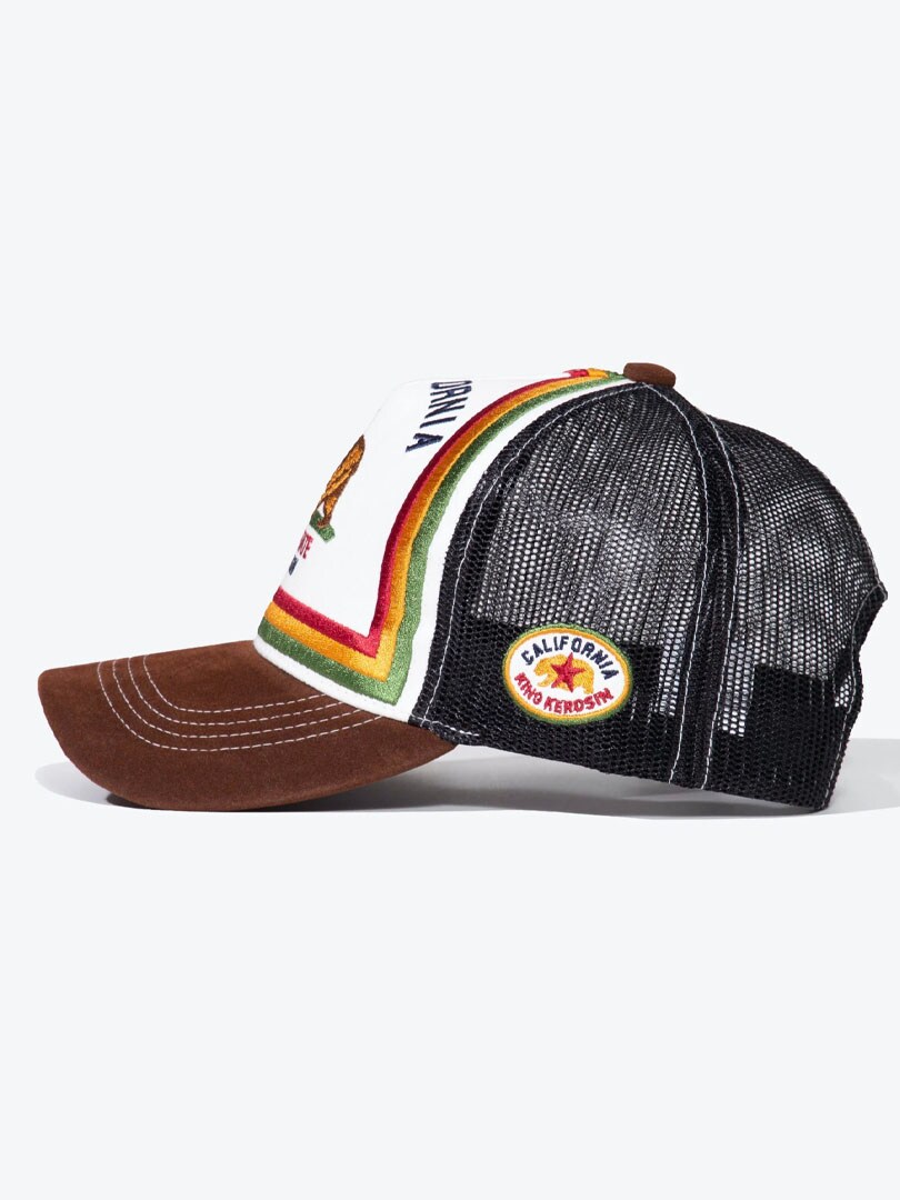 Stilfuld cap med buet skygge og mesh bagpå. På fronten er der et motiv med en bjørn og teksten ”California Motor State”. Takket være snapback-lukningen bagpå kan pasformen nemt justeres for optimal komfort.