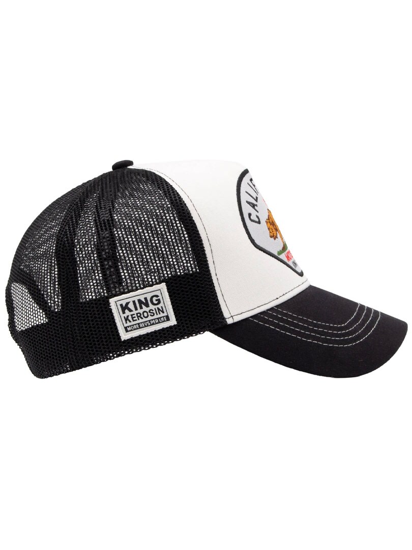 Stilfuld cap med buet skygge og mesh bagpå. På fronten er der et motiv med en bjørn og teksten ”California Motor State”. Takket være snapback-lukningen bagpå kan pasformen nemt justeres for optimal komfort.