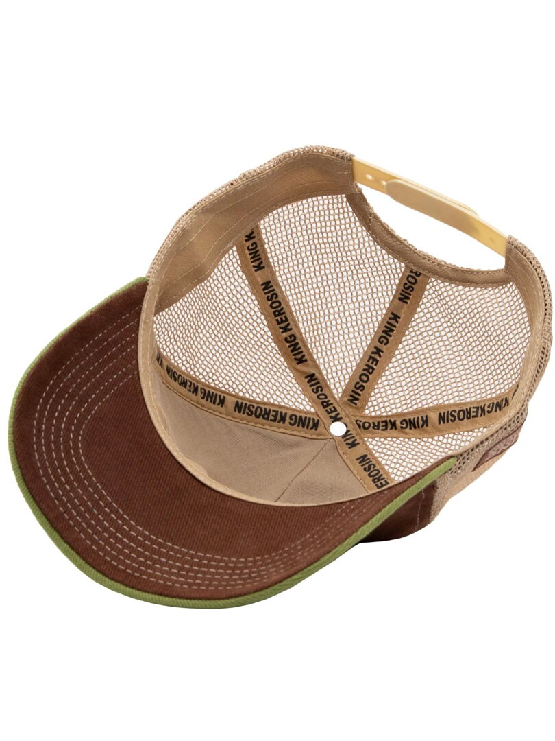 Brun kasket designet med en iøjnefaldende brodering med banjo-kors og teksten “Country Music”, der gør kasketten til et ægte blikfang for alle, der elsker autentiske looks. Fronten er lavet af robust bomuldstof, mens den luftige mesh-bagside giver god ventilation. Takket være snapback-lukningen kan kasketten justeres individuelt for perfekt pasform.