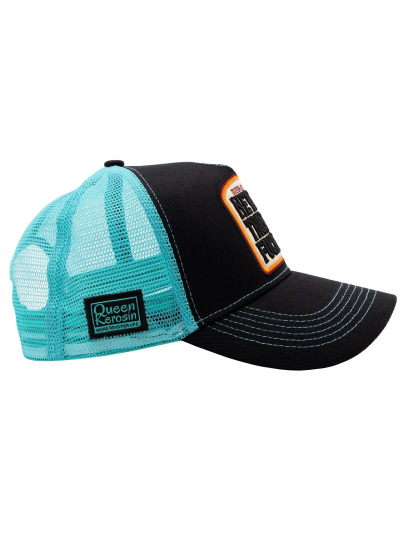 Sej kasket i sort og lyseblå med broderet logo foran og den frække tekst "Never Trust a F*cker". Den justerbare snapback sikrer perfekt pasform til alle hoveder. En legesyg kombination af attitude, humor og ægte stil. Kasketten har buet skærm og luftig mesh bagpå, der giver både stil og god ventilation.