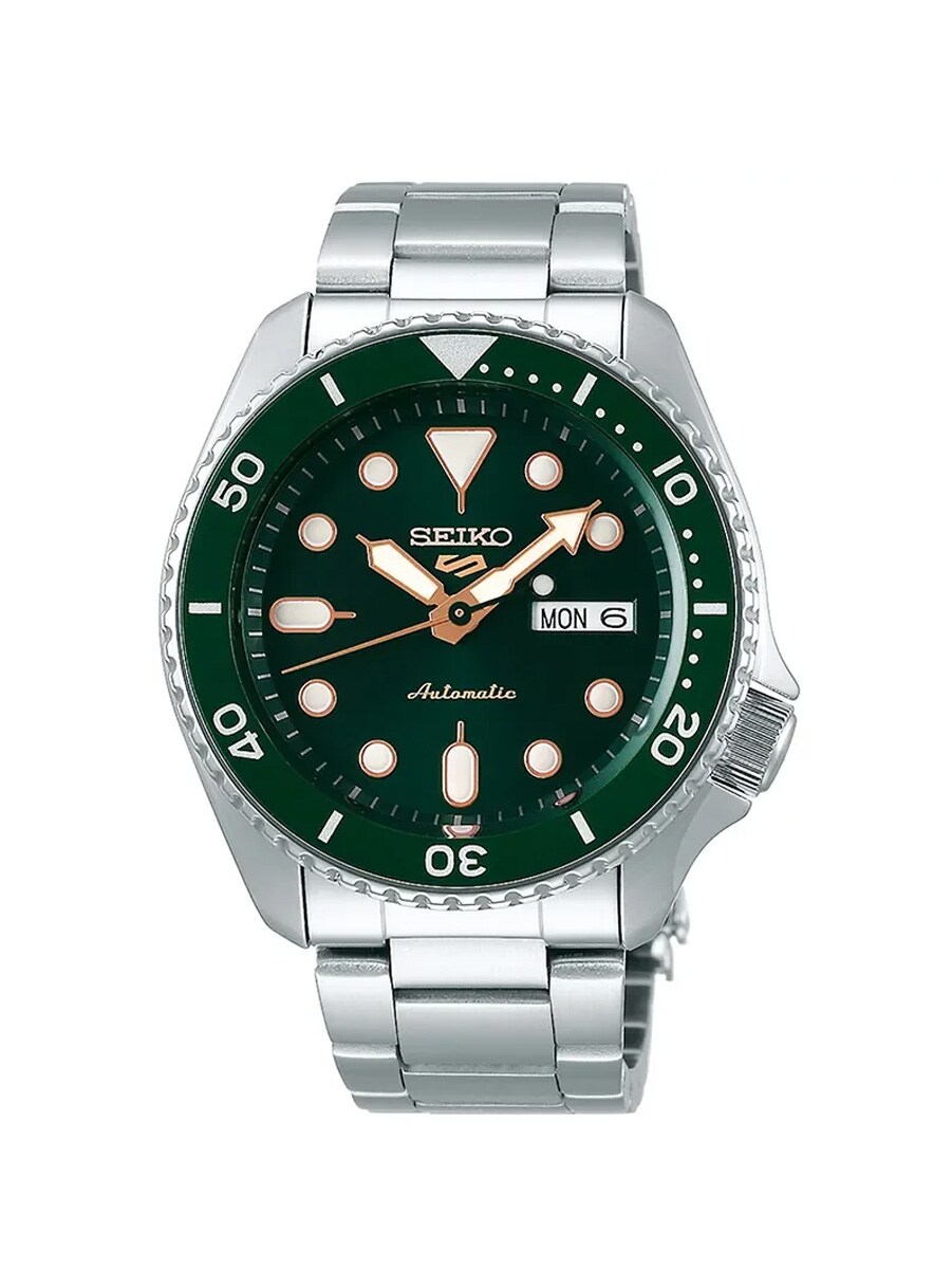 Seiko 5 Sports SRPD63K1 er et eksklusivt herreur, der udmærker sig med sin dybgrønne urskive og elegante visere i roséguld. Uret drives af et automatisk urværk, der oplades af dine bevægelser, hvilket betyder, at intet batteriskift er nødvendigt. Den robuste urkasse og lænke i rustfrit stål suppleres af et slidstærkt Hardlex-glas og en tydelig dag- og datovisning. Med en vandtæthed på 100 meter er denne model konstrueret til at klare både hverdagens udfordringer og sporty aktiviteter. En perfekt kombination af sporty funktionalitet og sofistikeret stil til den moderne mand.