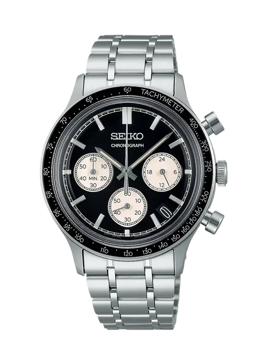 Seiko Chronograph SSB479P1 er et stilrent herreur, der kombinerer et sporty "Reverse Panda"-design med klassisk elegance. Den sorte urskive kontrasteres flot af beige underurskiver, sølvfarvede indekser og en tachymeter-ring. Uret har en robust urkasse og lænke i rustfrit stål samt praktisk datovisning og tidtagningsfunktion. Med 100 meters vandtæthed og et holdbart mineralglas er modellen både funktionel og holdbar til hverdagsbrug.
