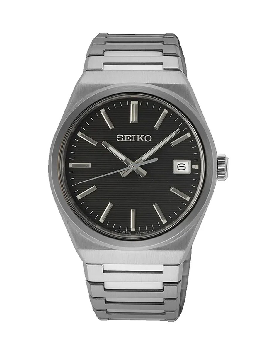 Seiko SUR557P1 er et sofistikeret herreur, der tilbyder et klassisk design med et moderne touch i rustfrit stål. Den sorte urskive har en elegant horisontal struktur og tydelige sølvfarvede indekser samt datovisning ved klokken tre. Uret er beskyttet af et ridsefast safirglas, der sikrer holdbarhed og klarhed over tid. Med et pålideligt kvartsurværk og vandtæthed op til 100 meter er dette et alsidigt tilbehør til både hverdag og fest. Den integrerede lænke giver en behagelig pasform og fuldender det stilrene udseende.