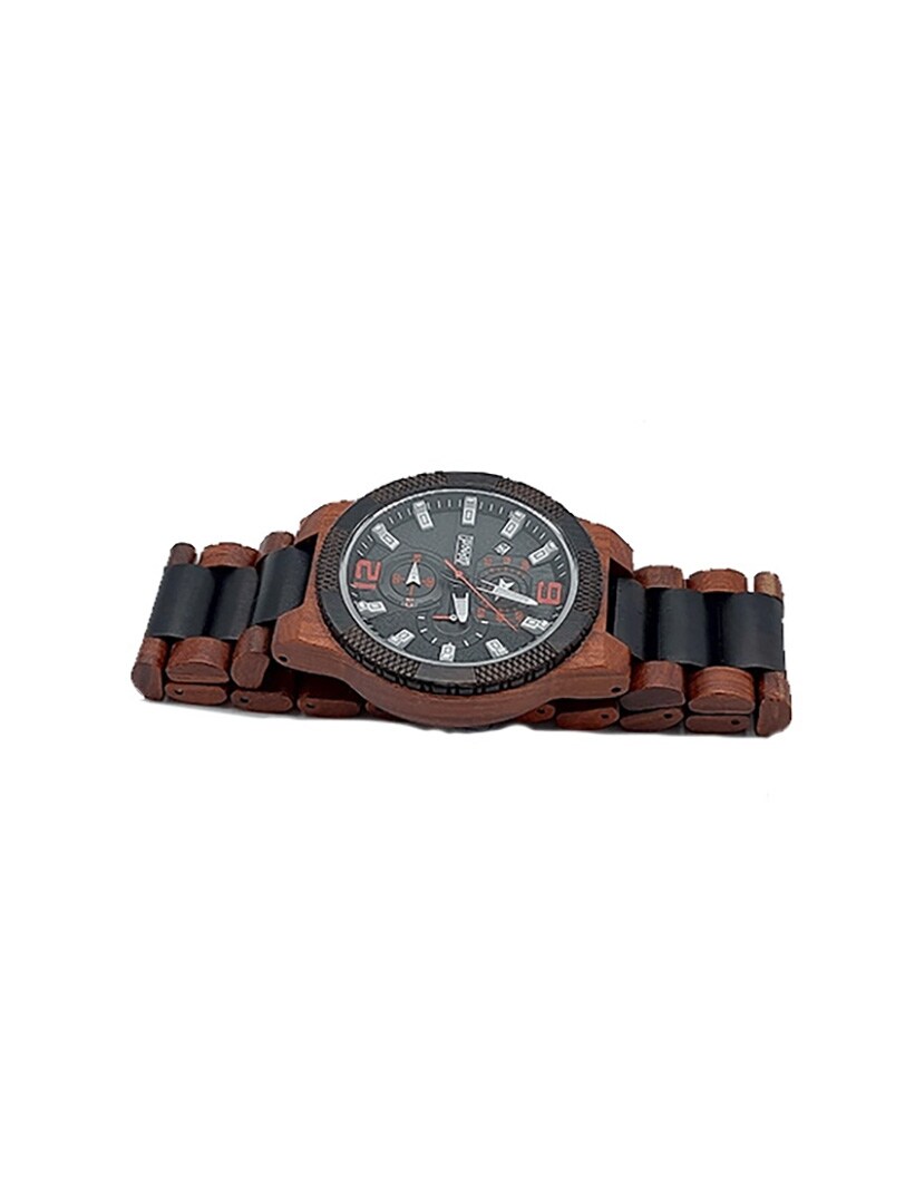 Eksklusivt håndlavet ur i rødt sandeltræ med et luksuriøst og kraftfuldt design. Modellen er en del af Woeds Premium-serie og kombinerer solidt håndværk med en moderne multifunktionsurskive. Et ur til dig, der søger et unikt accessorie med både karakter og premiumfølelse.