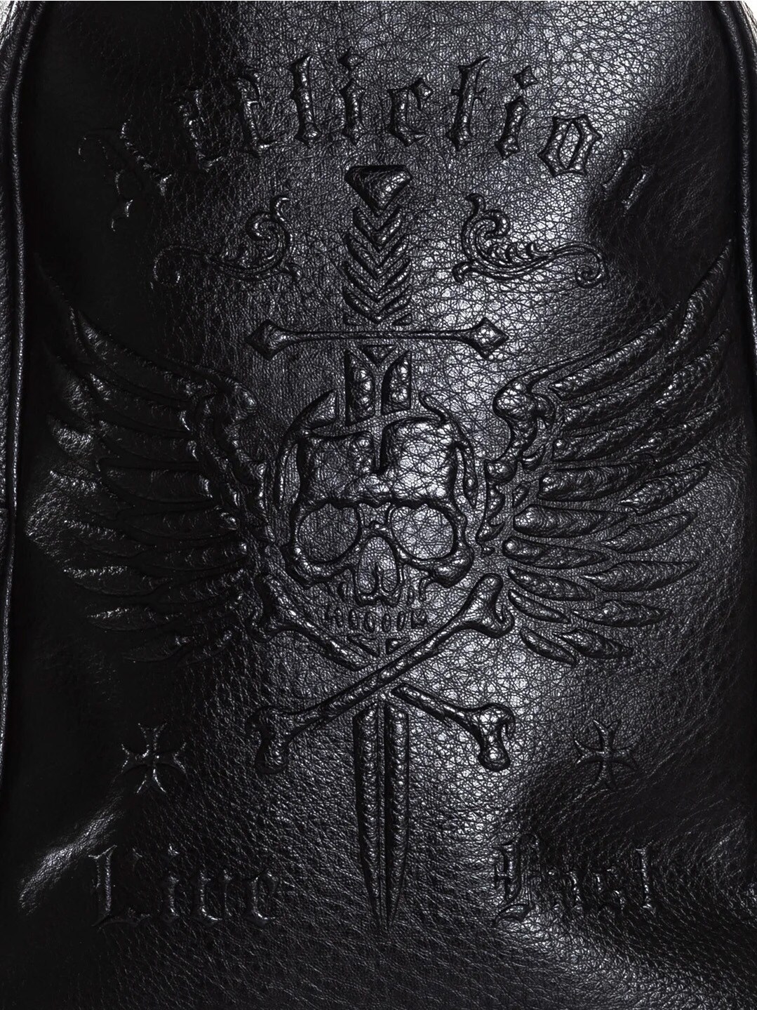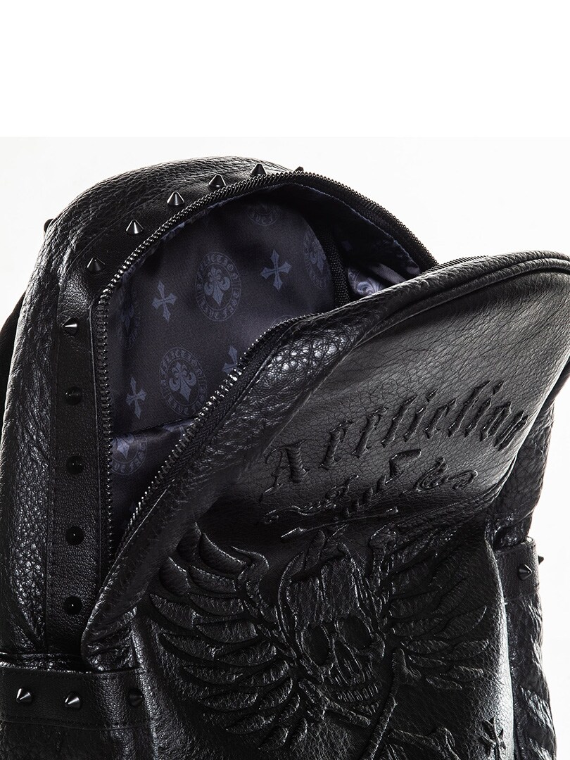 Dette er en rå og stilren rygsæk til dig, der vil skille dig ud. Designet forstærkes af koniske nitter, som giver et tydeligt punk- og rockudtryk. Rygsækken har en robust sort lynlås og er udstyret med tre inderlommer og to yderlommer. Den har polstrede skulderstropper, som gør den behagelig at bære.