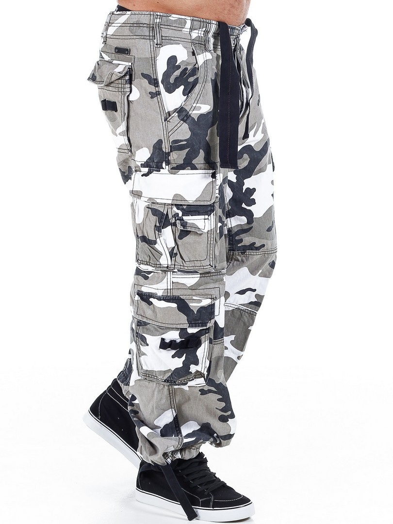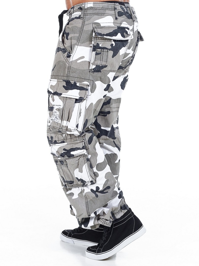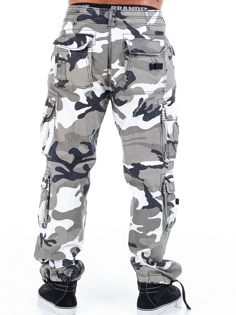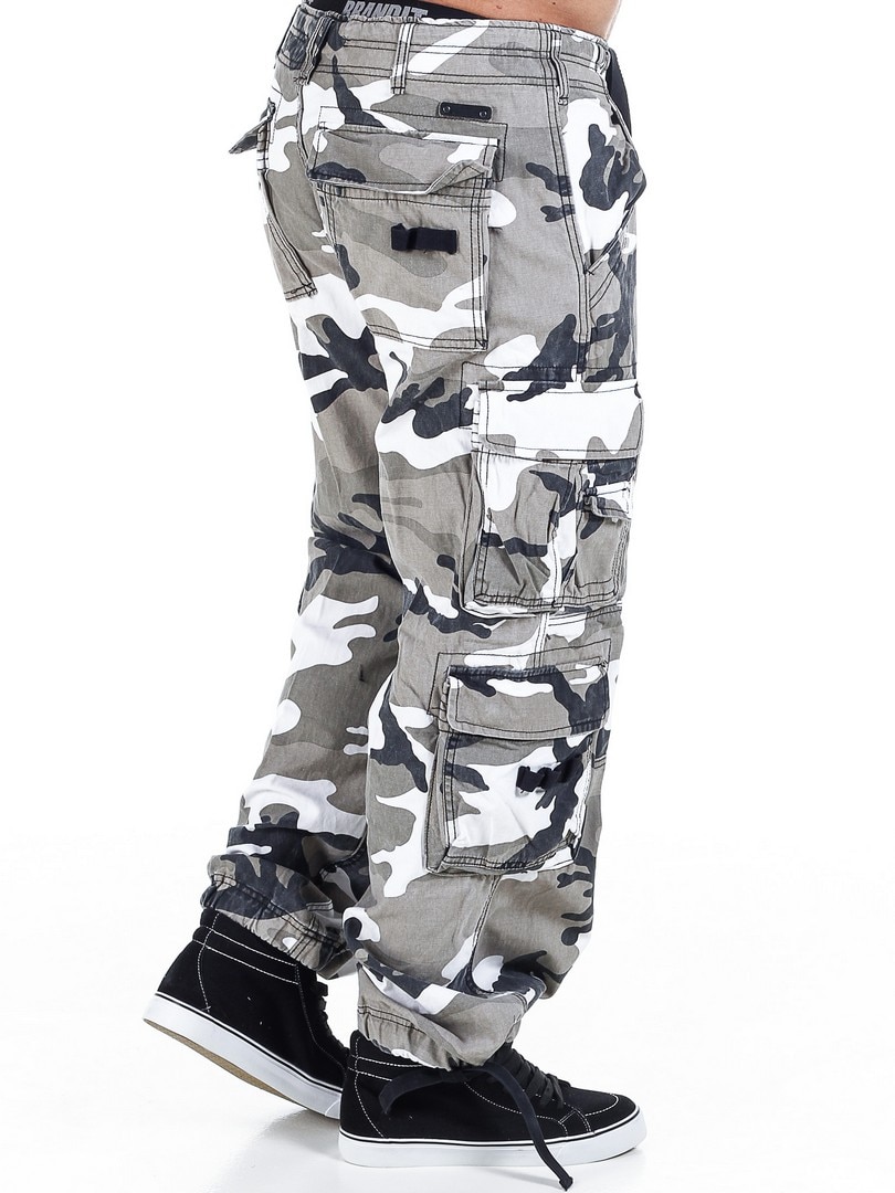 Hvide cargobukser fra Brandit i et sløringsmønster