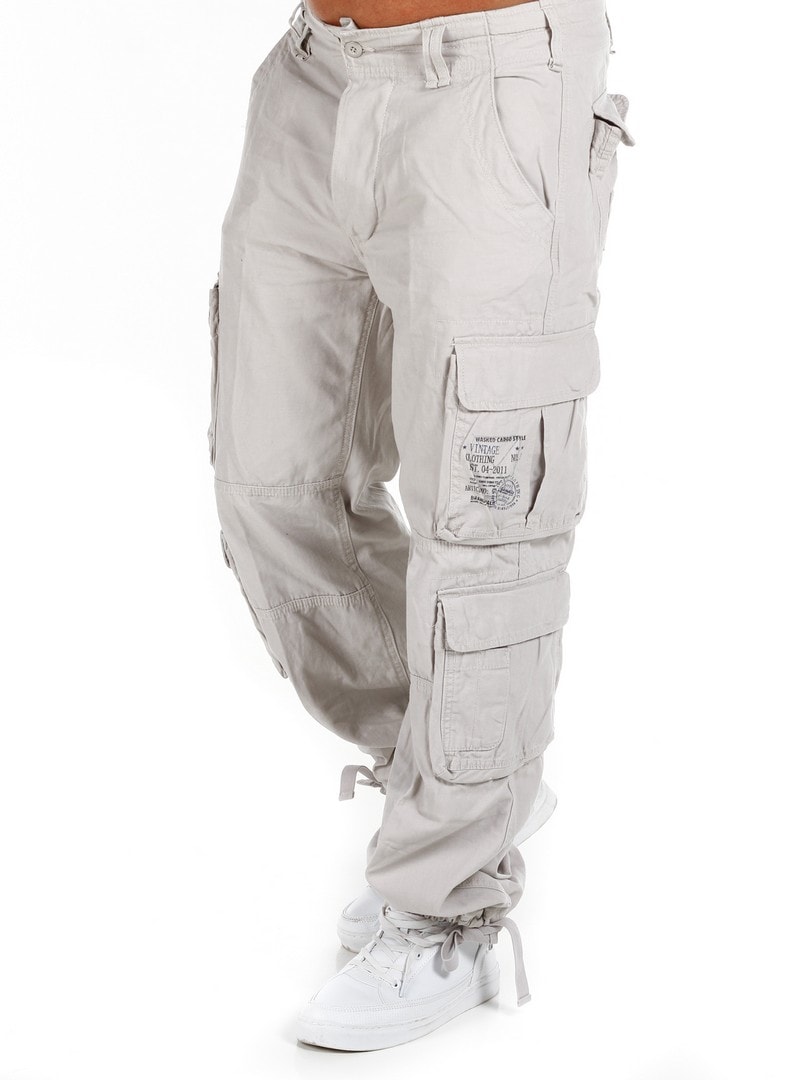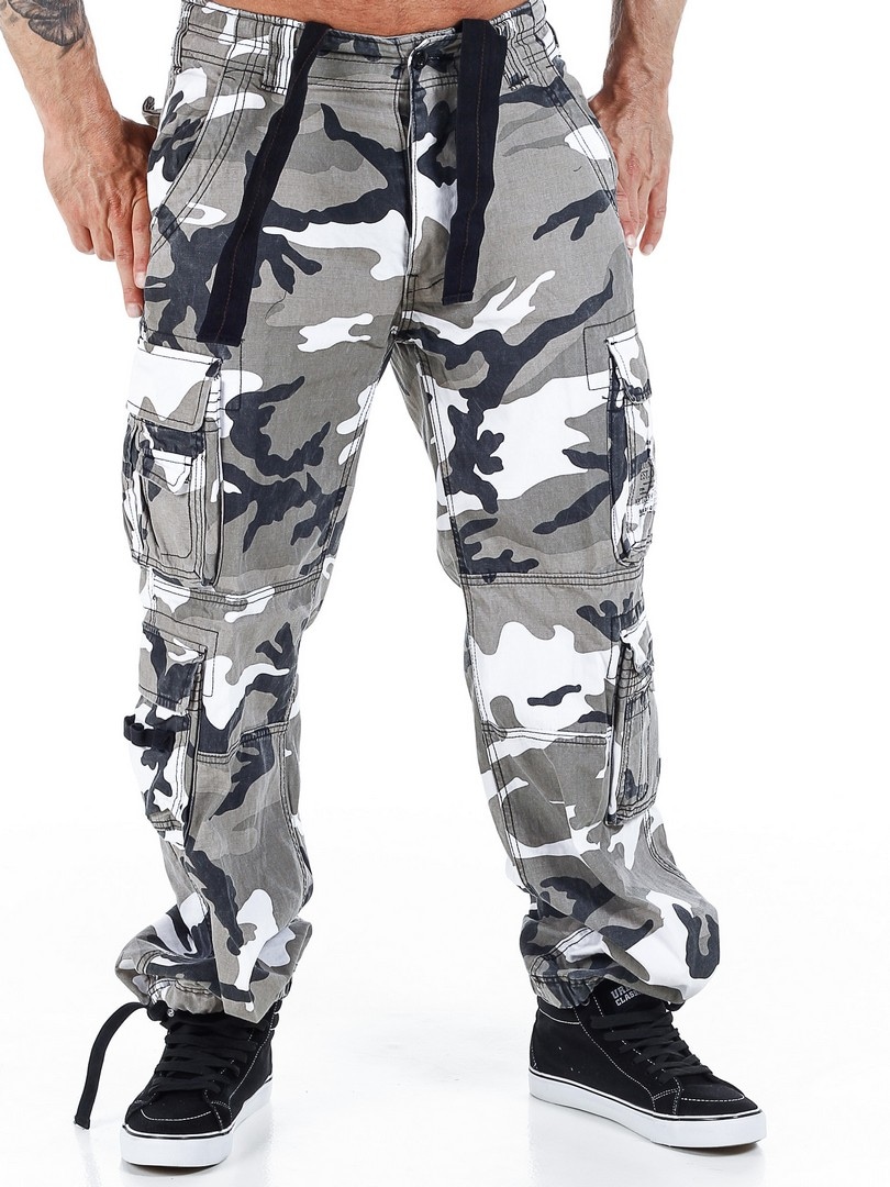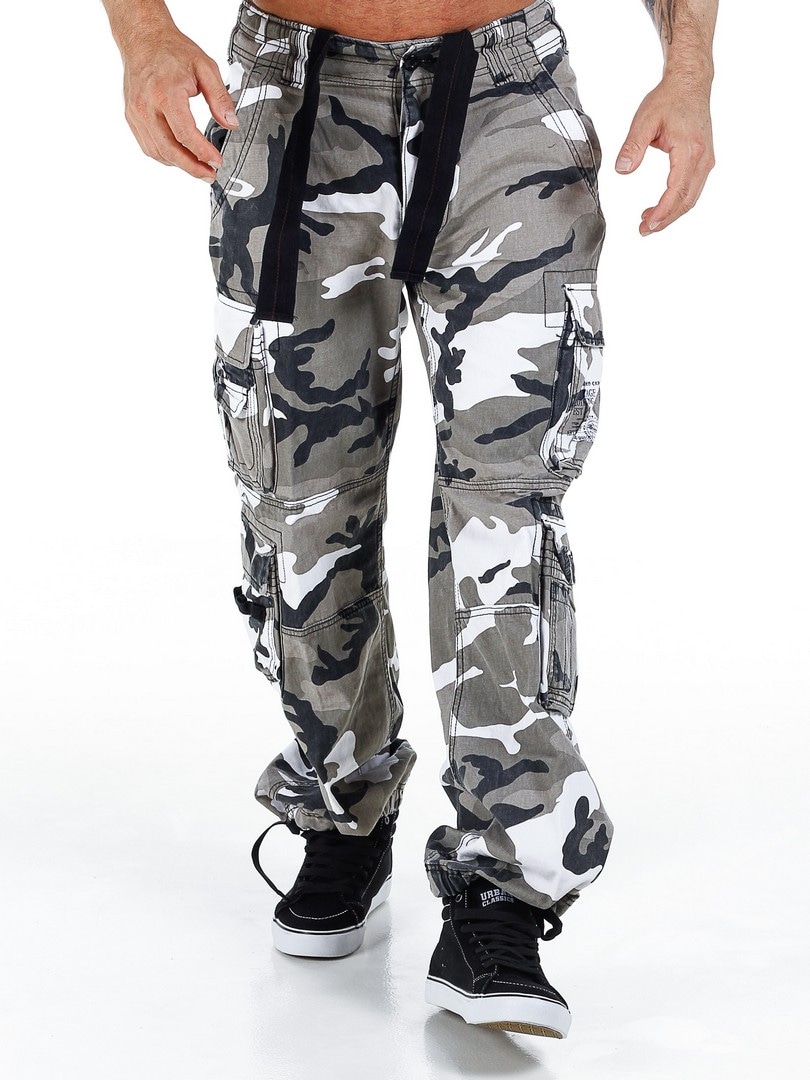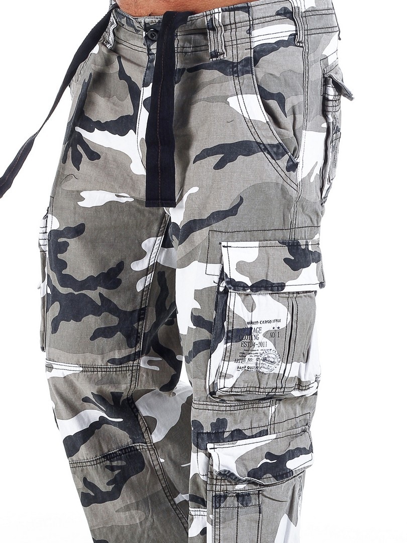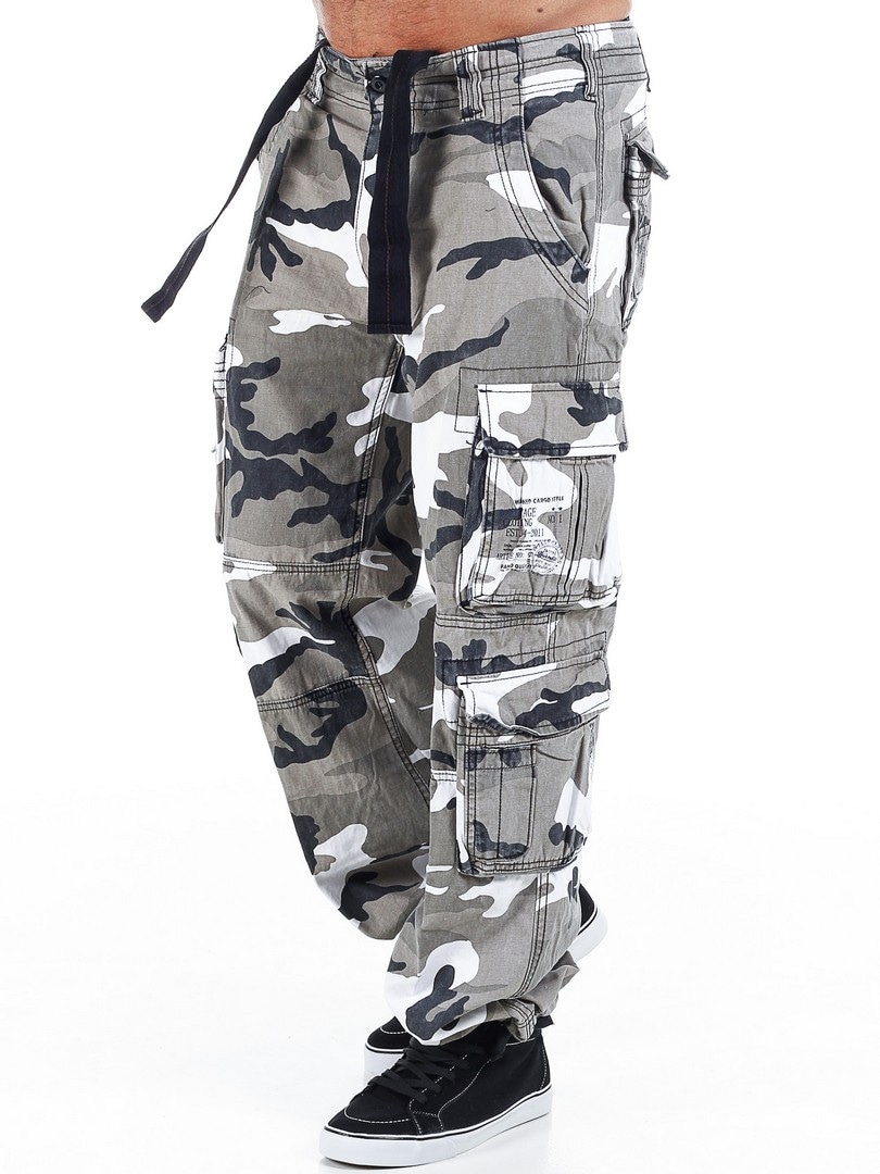 Hvide cargobukser fra Brandit i et sløringsmønster