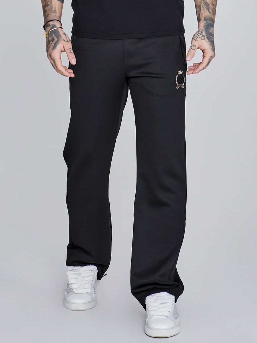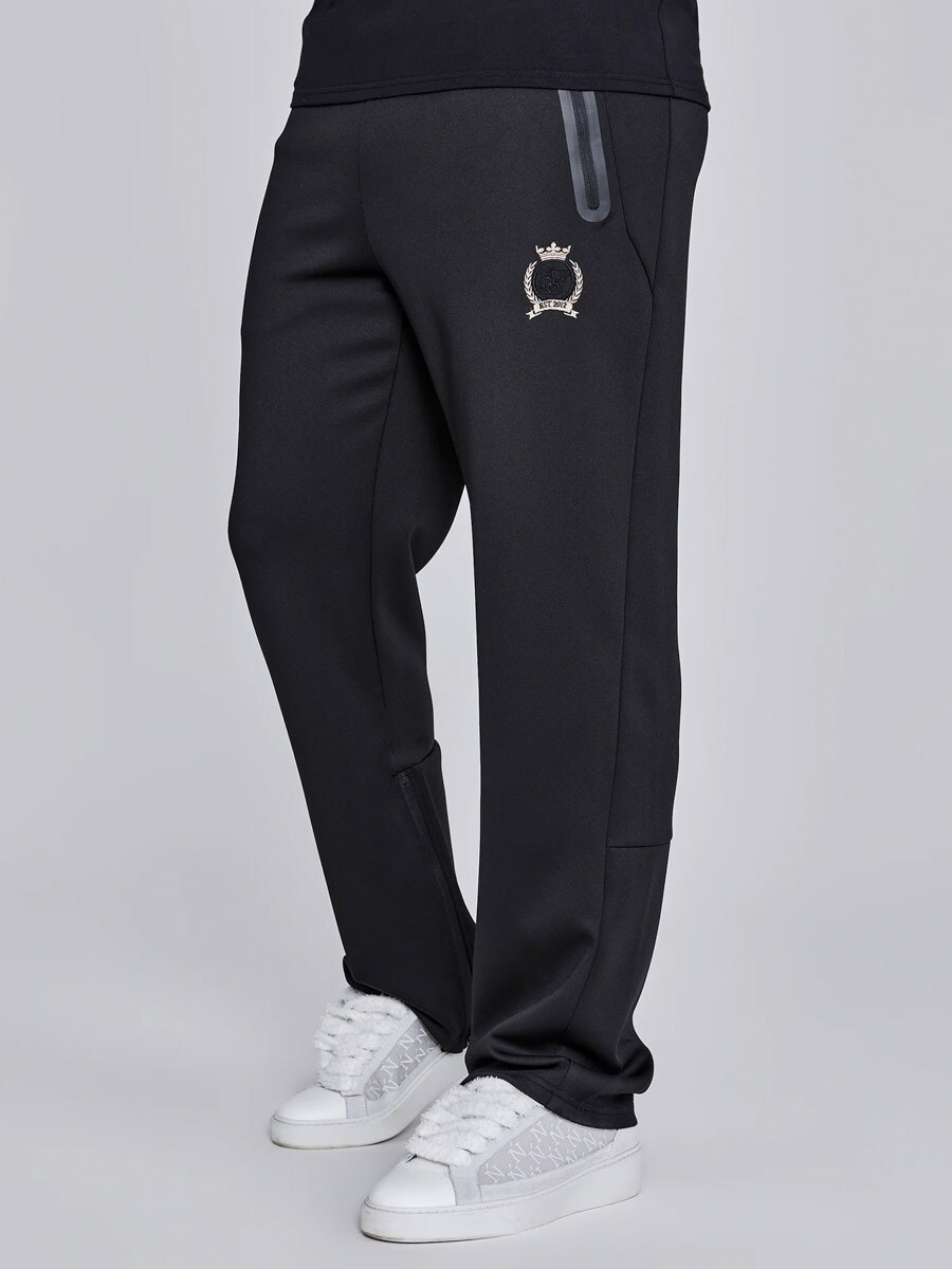 Giv dit outfit et sporty touch med disse stilrene track pants med en moderne og afslappet pasform. Bukserne er fremstillet i et strækbart materiale, der giver fuld bevægelsesfrihed og en behagelig følelse hele dagen. Den elastiske talje med snøre gør det nemt at justere pasformen, mens lynlåslommer holder dine ejendele sikre, når du er på farten.