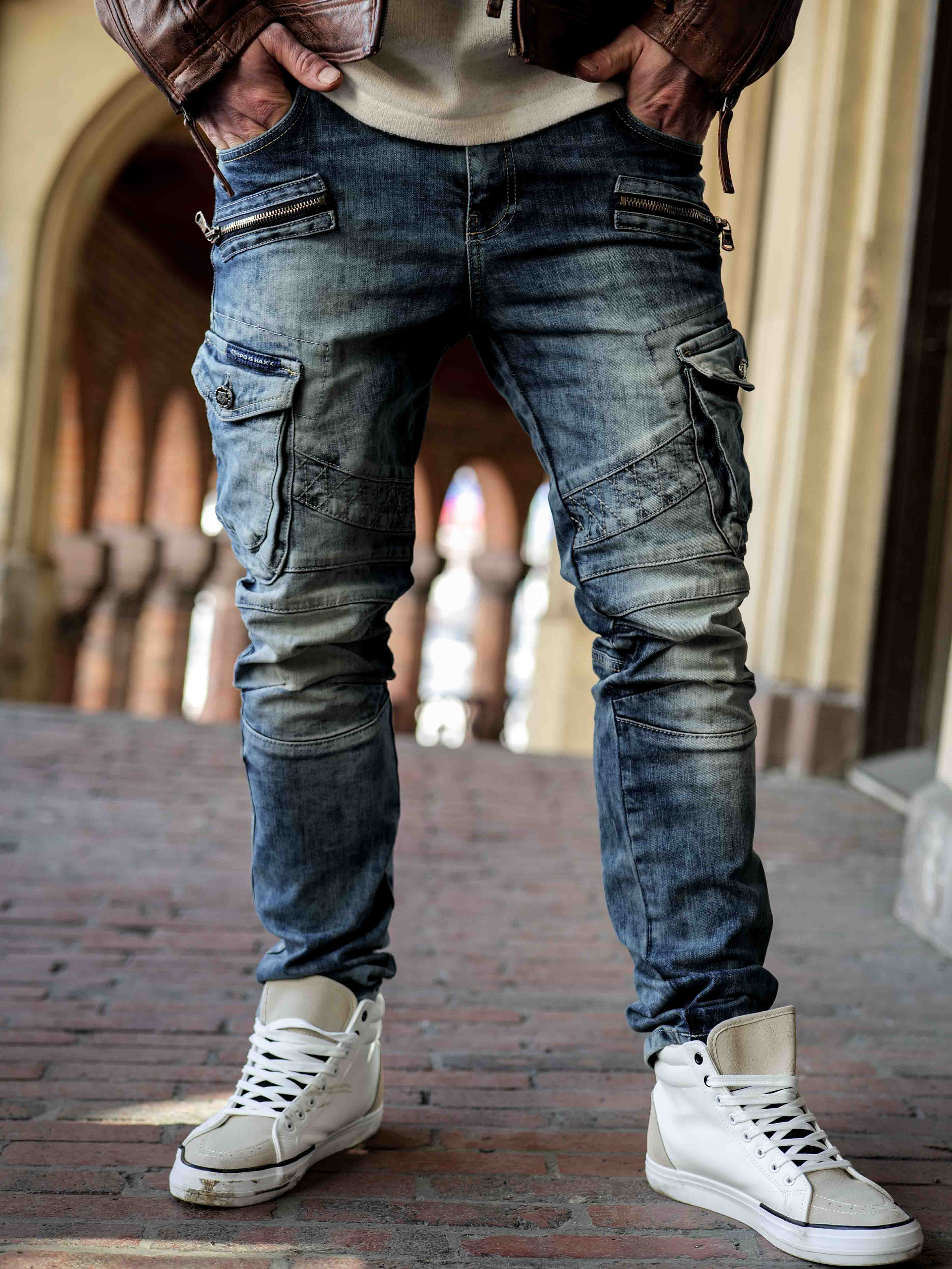 Rå og funktionelle cargobukser til mænd. Cargobukser er et must-have for mænd, der værdsætter både stil og funktionalitet. Med flere praktiske lommer og slidstærke materialer giver disse bukser et råt og maskulint look. Perfekte til både hverdagsbrug og eventyr, uanset om du er i byen eller ude i naturen. Udforsk vores udvalg af cargobukser i forskellige farver og pasformer – find din favorit hos RockDenim!