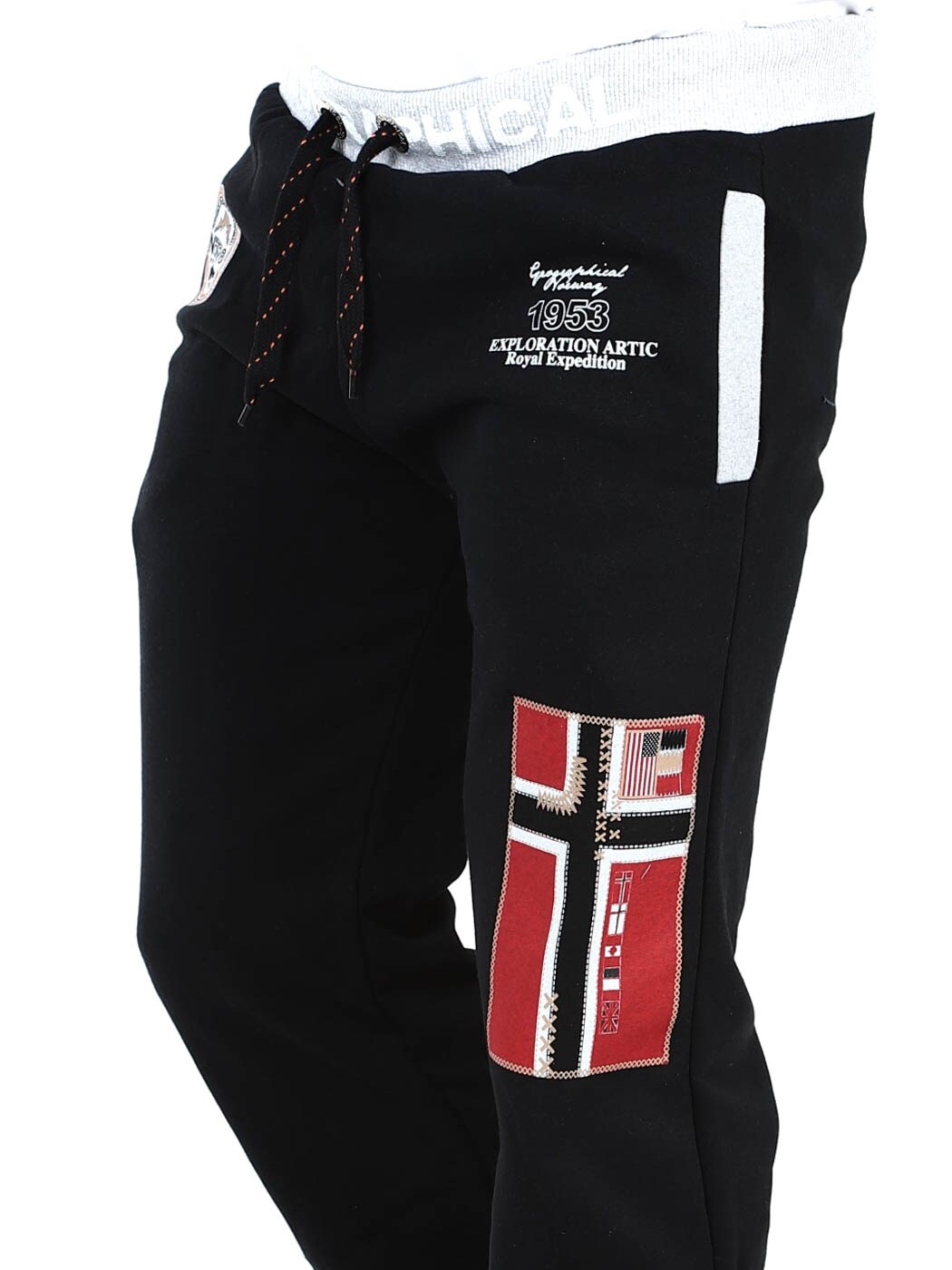 Joggingbukser i en dejlig bomuldsblanding med to lommer fortil og en bagpå. Hertil kommer ribkanter, med stræk i, ved benenes slutning og en snøring i taljen. Mærkets typiske design ses tydeligt på benene.