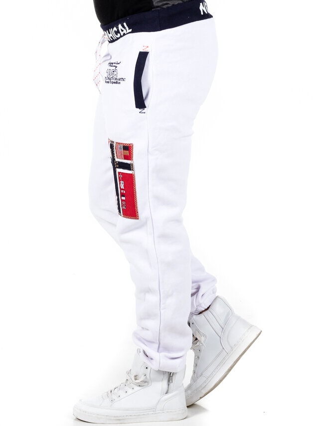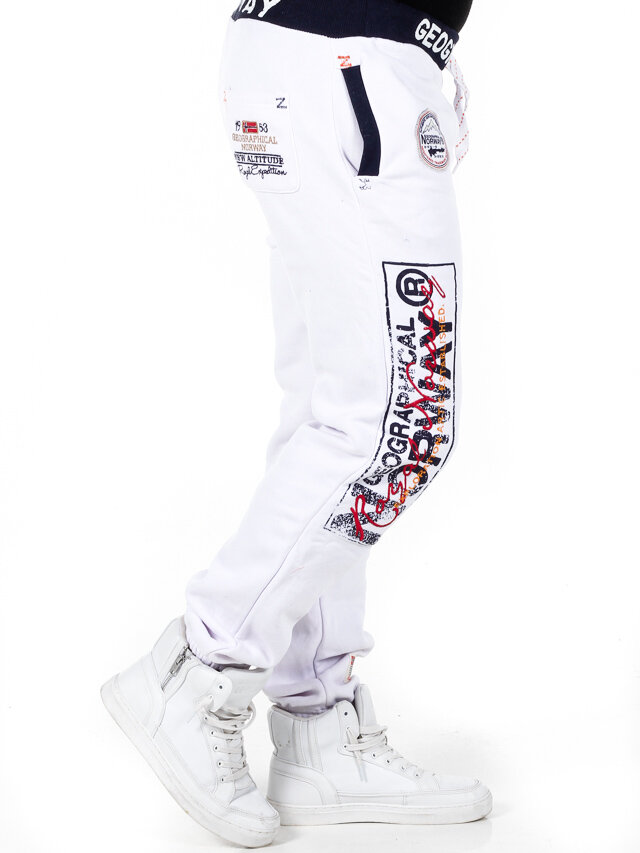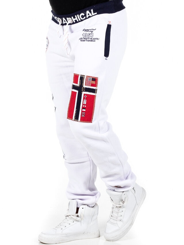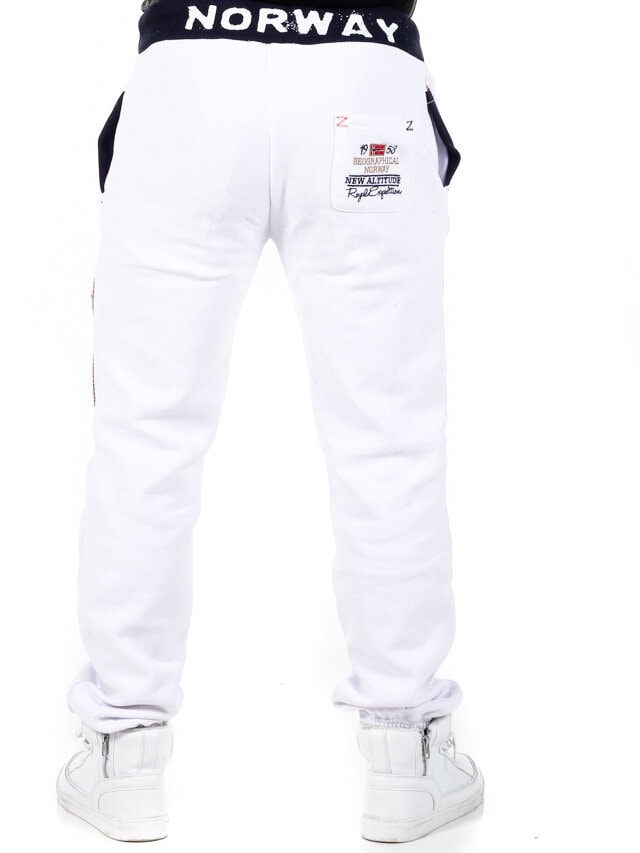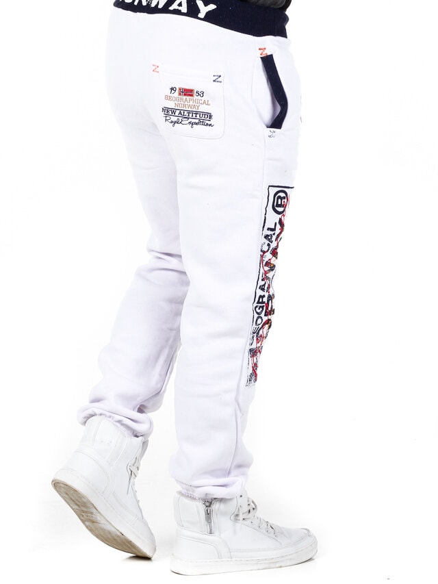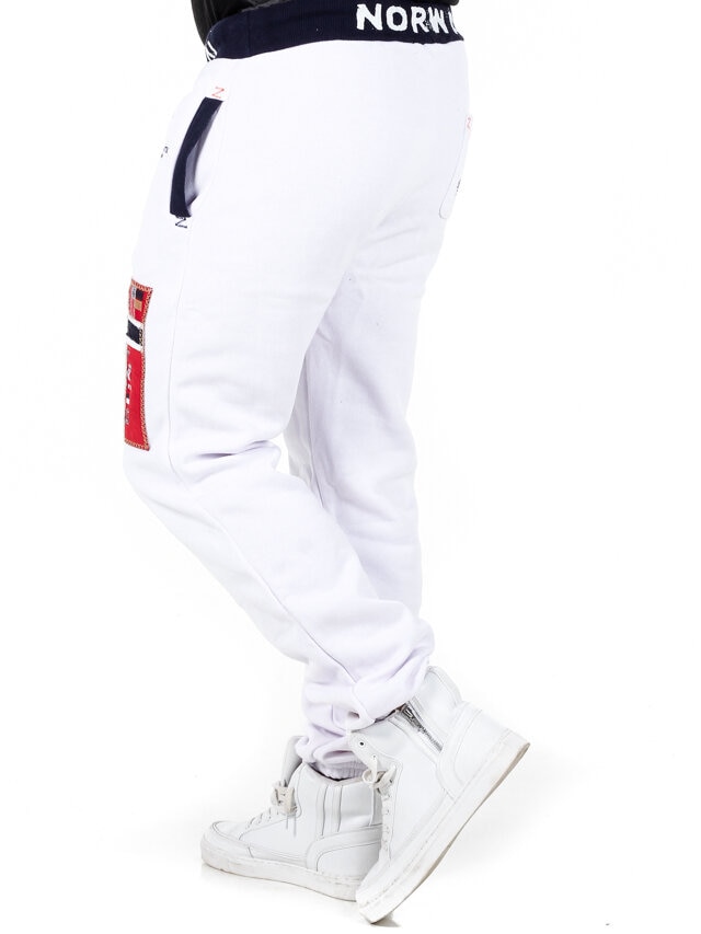 Joggingbukser i en dejlig bomuldsblanding med to lommer fortil og en bagpå. Hertil kommer ribkanter, med stræk i, ved benenes slutning og en snøring i taljen. Mærkets typiske design ses tydeligt på benene.