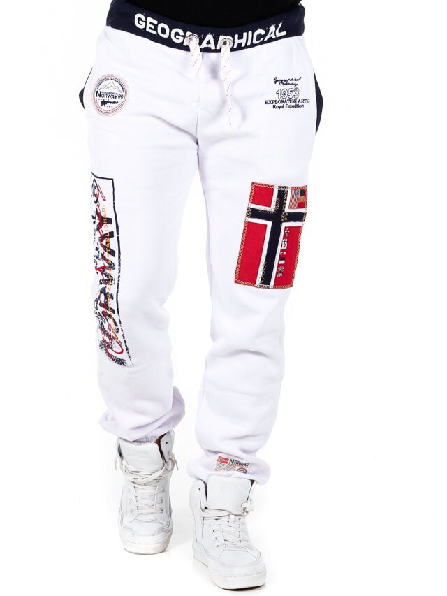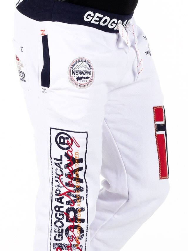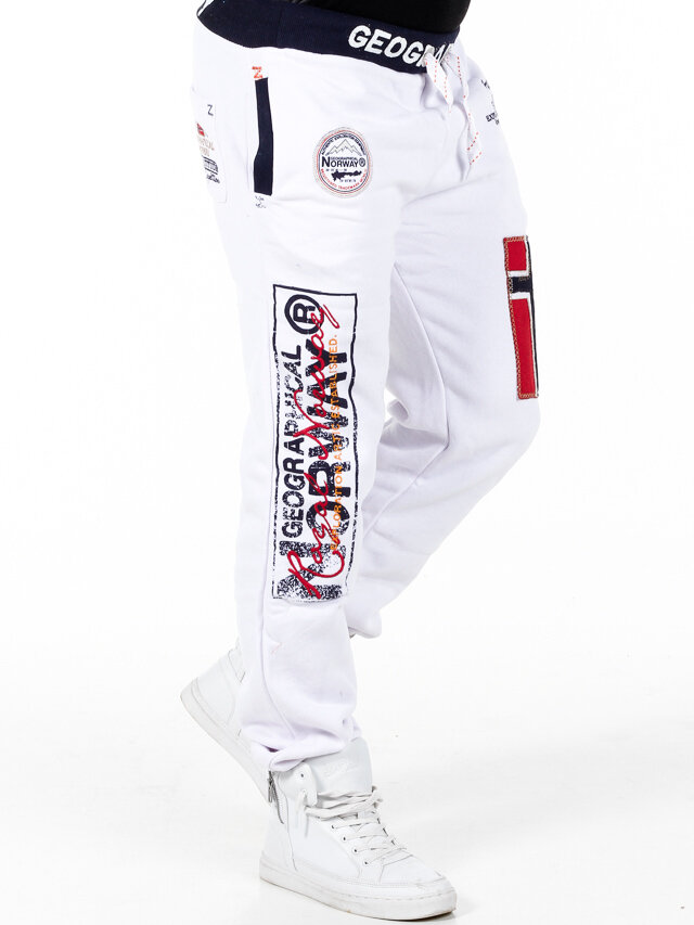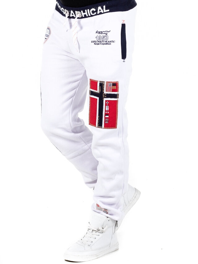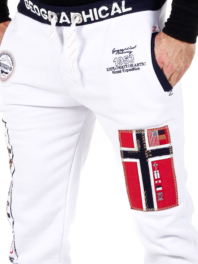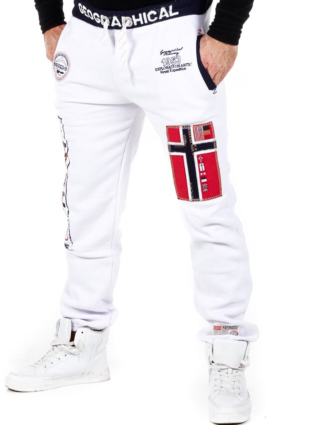 Joggingbukser i en dejlig bomuldsblanding med to lommer fortil og en bagpå. Hertil kommer ribkanter, med stræk i, ved benenes slutning og en snøring i taljen. Mærkets typiske design ses tydeligt på benene.