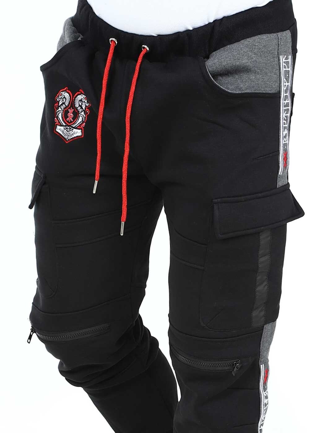 Joggingbukser med vikinge-inspirerede motiver. Disse bukser har flere lommer og elastiske kanter i taljen, samt ved anklerne. Der findes desuden lynlåse på benene foran, der kan åbnes og fungere som lufthuller. Du finder kun disse unikke bukser hos RockDenim!