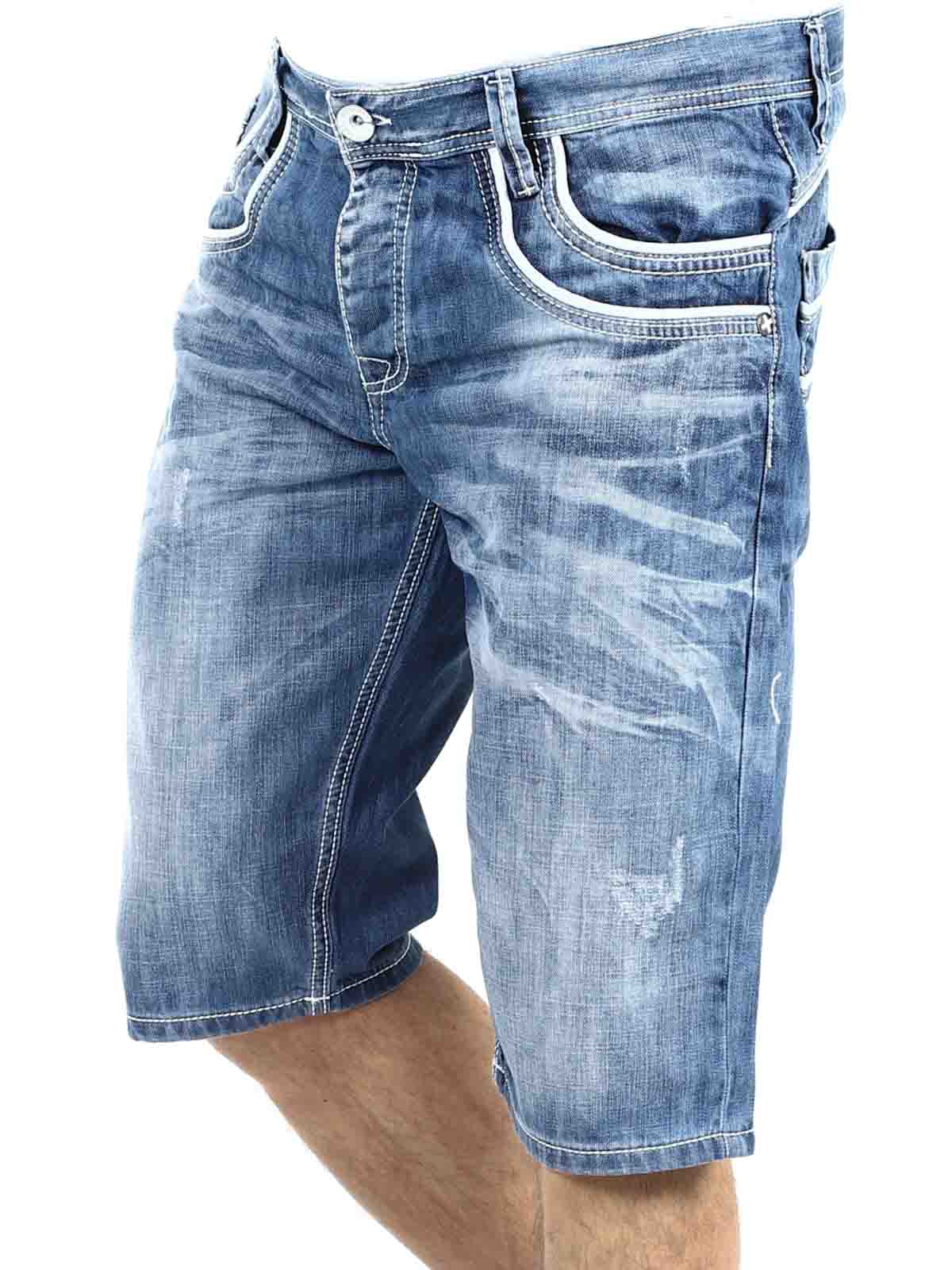 Shorts i en stenvasket denim med kontrastsømme og slidte detaljer. Dette er en knælang model i regular fit med et klassisk 5-lommers design. Perfekt til sommerens hverdags-outfits!