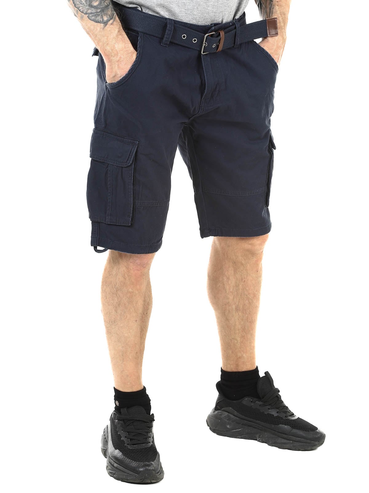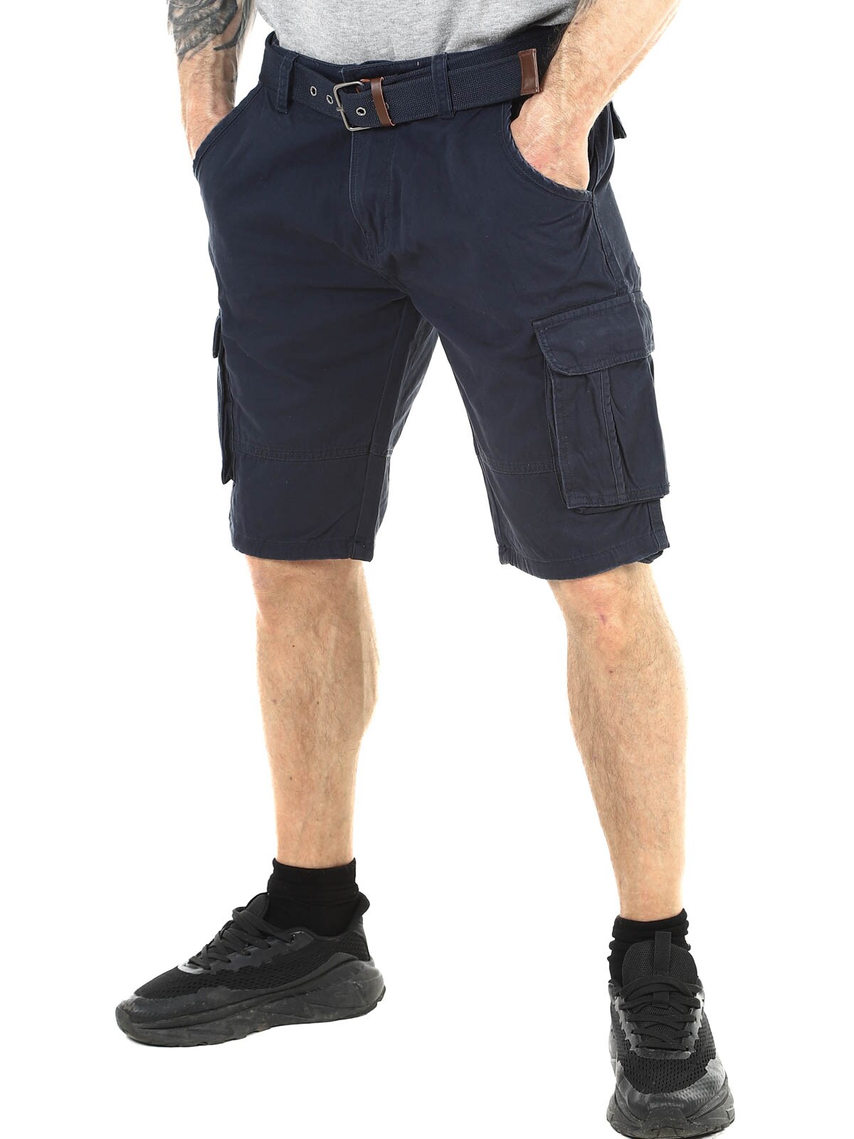 Flotte shorts i en slidstærk bomuld. De har godt med lommer, hvor flere kan lukkes. Dette er en mellemlang model med et medfølgende bælte.