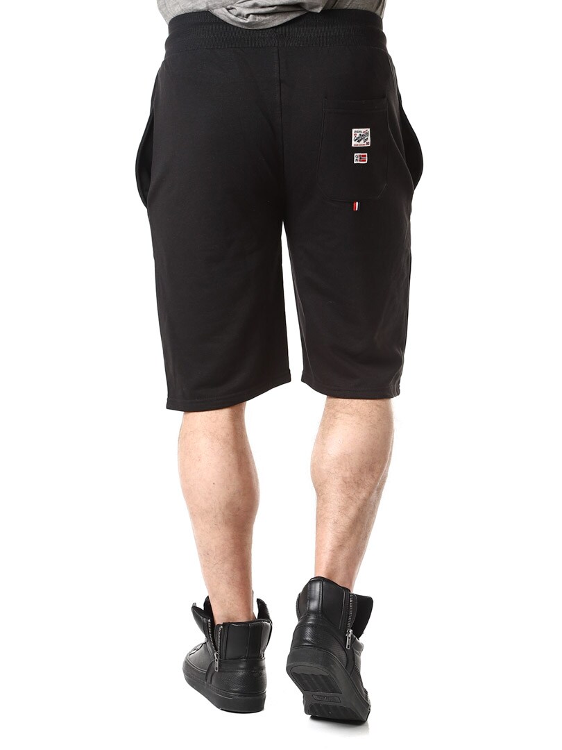 Ensfarvede shorts med tryk, logo og lapper. De har tre åbne lommer og en ribbet kant med snøring i taljen. De er fremstillet i en blød blanding af bomuld.