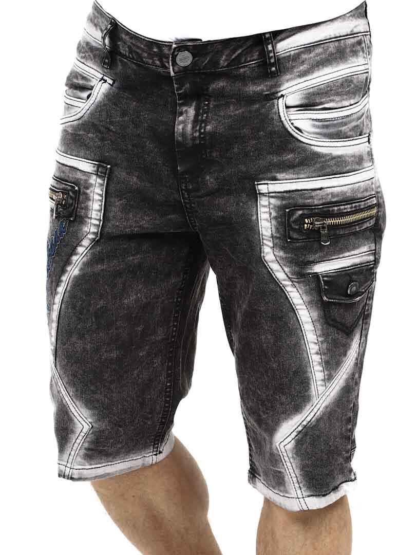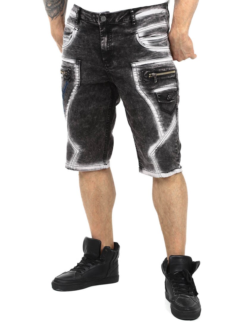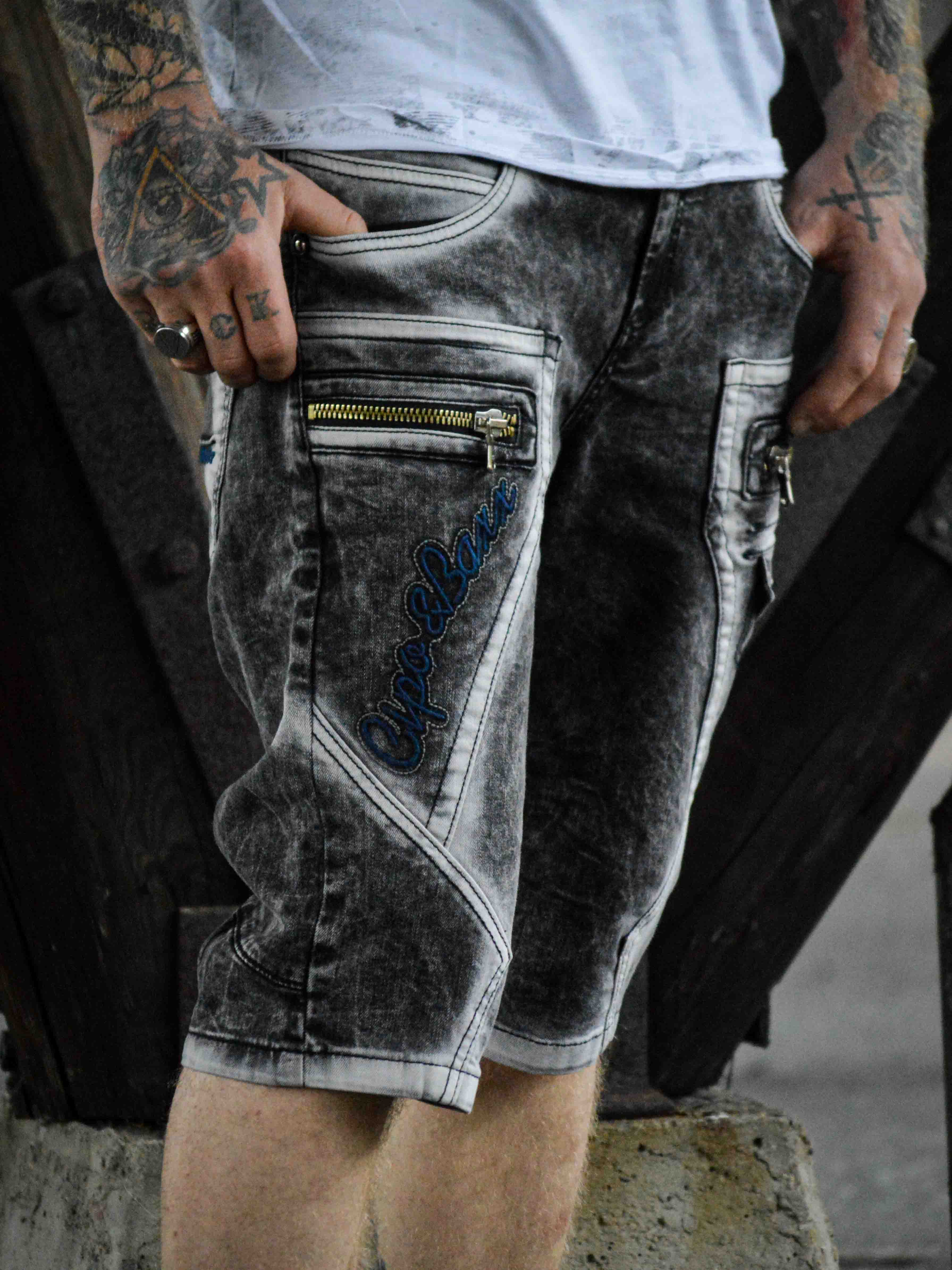 Giv din streetwear-stil en opgradering med disse unikke shorts. Lavet af slidstærkt denim med en kraftigt vasket finish, der giver den et cool look. De har flere funktionelle lommer, et broderet logo og grove syninger for ekstra edge. Lynlåsene fortil er kun til pynt og er ikke funktionelle.